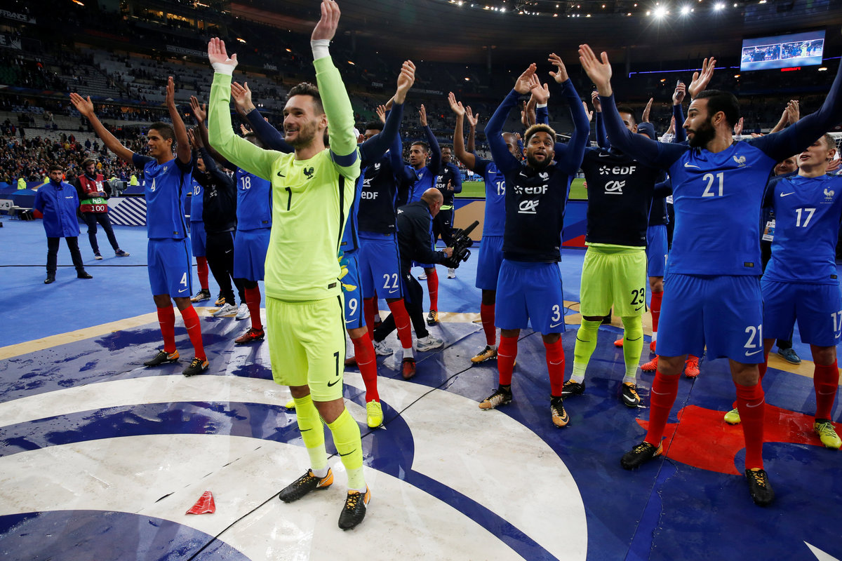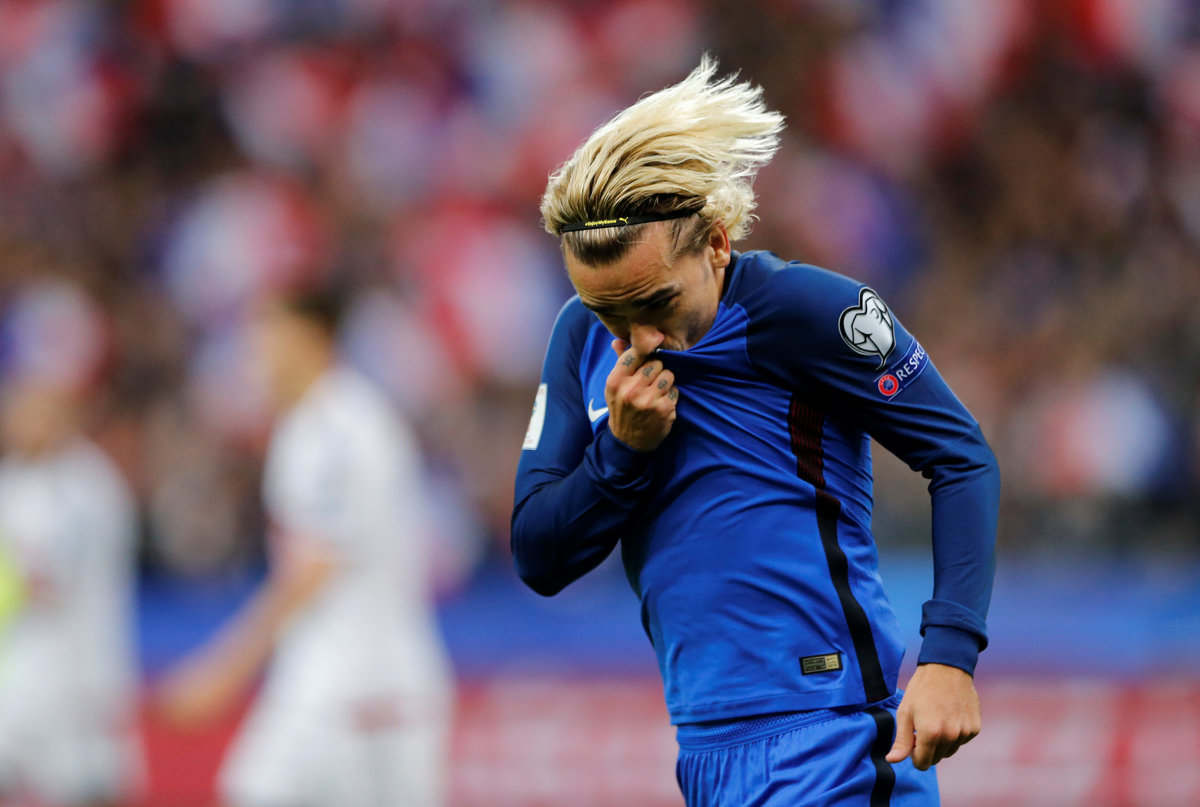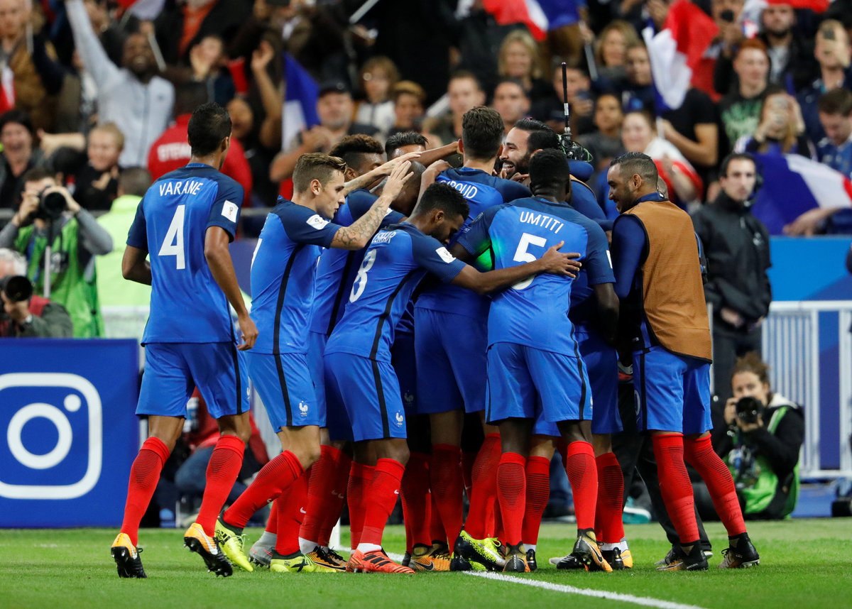 Soccer Football - 2018 World Cup Qualifications - Europe - France vs Belarus - Stade de France, Paris, France - October 10, 2017 France's Blaise Matuidi in action with Belarus’ Aleksandr Karnitskiy REUTERS/Pascal RossignolSoccer Football - 2018 World Cup Qualifications - Europe - France vs Belarus - Stade de France, Paris, France - October 10, 2017 France's Antoine Griezmann and Olivier Giroud go down in the penalty area as Belarus’ Sergey Chernik makes a save REUTERS/Charles PlatiauSoccer Football - 2018 World Cup Qualifications - Europe - France vs Belarus - Stade de France, Paris, France - October 10, 2017 Belarus’ Anton Saroka in action with France's Corentin Tolisso REUTERS/Pascal RossignolSoccer Football - 2018 World Cup Qualifications - Europe - France vs Belarus - Stade de France, Paris, France - October 10, 2017 France's Kylian Mbappe in action with Belarus’ Igor Stasevich and Maksim Volodko REUTERS/Charles PlatiauSoccer Football - 2018 World Cup Qualifications - Europe - France vs Belarus - Stade de France, Paris, France - October 10, 2017 France's Antoine Griezmann scores their first goal REUTERS/Pascal RossignolSoccer Football - 2018 World Cup Qualifications - Europe - France vs Belarus - Stade de France, Paris, France - October 10, 2017 France's Antoine Griezmann celebrates scoring their first goal with team mates REUTERS/Charles PlatiauSoccer Football - 2018 World Cup Qualifications - Europe - France vs Belarus - Stade de France, Paris, France - October 10, 2017 France's Antoine Griezmann celebrates scoring their first goal REUTERS/Pascal RossignolSoccer Football - 2018 World Cup Qualifications - Europe - France vs Belarus - Stade de France, Paris, France - October 10, 2017 France coach Didier Deschamps and Kylian Mbappe celebrate their qualification for the World Cup REUTERS/Pascal RossignolSoccer Football - 2018 World Cup Qualifications - Europe - France vs Belarus - Stade de France, Paris, France - October 10, 2017 France's Antoine Griezmann celebrates scoring their first goal REUTERS/Pascal RossignolSoccer Football - 2018 World Cup Qualifications - Europe - France vs Belarus - Stade de France, Paris, France - October 10, 2017 France's Kylian Mbappe in action REUTERS/Charles PlatiauSoccer Football - 2018 World Cup Qualifications - Europe - France vs Belarus - Stade de France, Paris, France - October 10, 2017 Belarus’ Anton Saroka looks dejected after missing a chance to score REUTERS/Pascal RossignolSoccer Football - 2018 World Cup Qualifications - Europe - France vs Belarus - Stade de France, Paris, France - October 10, 2017 Belarus coach Igor Kriushenko REUTERS/Pascal RossignolSoccer Football - 2018 World Cup Qualifications - Europe - France vs Belarus - Stade de France, Paris, France - October 10, 2017 Belarus’ Anton Saroka celebrates scoring their first goal REUTERS/Pascal RossignolSoccer Football - 2018 World Cup Qualifications - Europe - France vs Belarus - Stade de France, Paris, France - October 10, 2017 France's Antoine Griezmann scores their first goal REUTERS/Pascal RossignolSoccer Football - 2018 World Cup Qualifications - Europe - France vs Belarus - Stade de France, Paris, France - October 10, 2017 France fans REUTERS/Charles Platiau