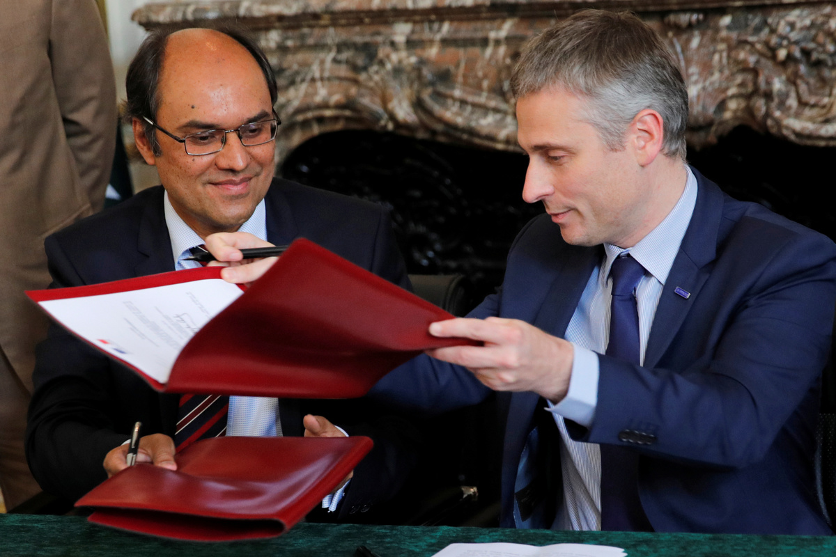 Rodolphe Gintz, head of French customs, and Muhammad Amjad Aziz Qazi, Deputy Head of Mission at the Embassy of Pakistan in Paris, sign official documents as France returns 445 artifacts from the 2nd and 3rd millennium BC to Pakistan, which were seized by French customs between 2006 and 2007, during a ceremony at the Embassy in Paris, France, July 2, 2019. REUTERS/Philippe WojazerArchaeologist Aurore Didier points to some artifacts amongst the 445 artifacts from the 2nd and 3rd millennium BC which were seized by French customs between 2006 and 2007, before being returned by French authorities to Pakistan, during a ceremony at the Embassy of Pakistan in Paris, France, July 2, 2019. REUTERS/Philippe WojazerA cameraman films some artifacts amongst the 445 artifacts from the 2nd and 3rd millennium BC which were seized by French customs between 2006 and 2007, before being returned by French authorities to Pakistan, during a ceremony at the Embassy of Pakistan in Paris, France, July 2, 2019. REUTERS/Philippe Wojazer