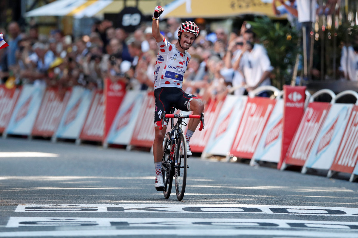 Alaphilippe fought hard to get his place in the day's large breakaway and he produced his effort at the right moment to be the second rider to reach the top of the Col du Portillon, 20 seconds behind Yates.