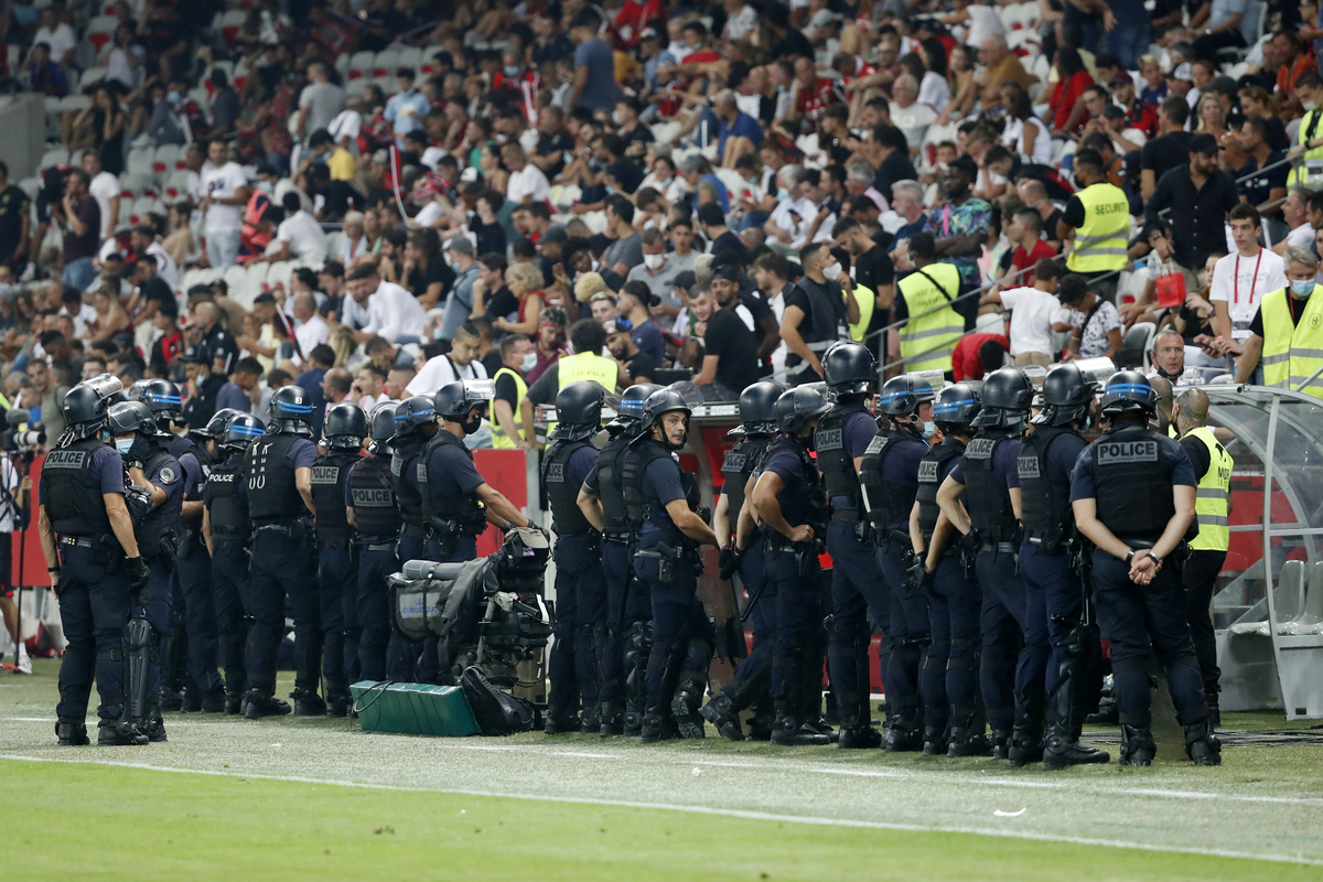 Players from both Nice and Marseille retreated to the tunnel and play was held up for 90 minutes before referee Benoit Bastien declared the match abandoned. Nice players had returned to the pitch shortly before the match was called off but Marseille's line-up refused to join them.