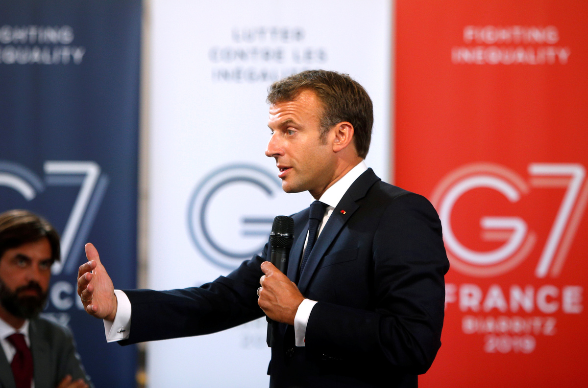 PARIS (Reuters) - French President Emmanuel Macron said on Friday that he would put pressure on the United States to sign a charter on protecting biodiversity at the G7 summit in Biarritz, France this weekend.