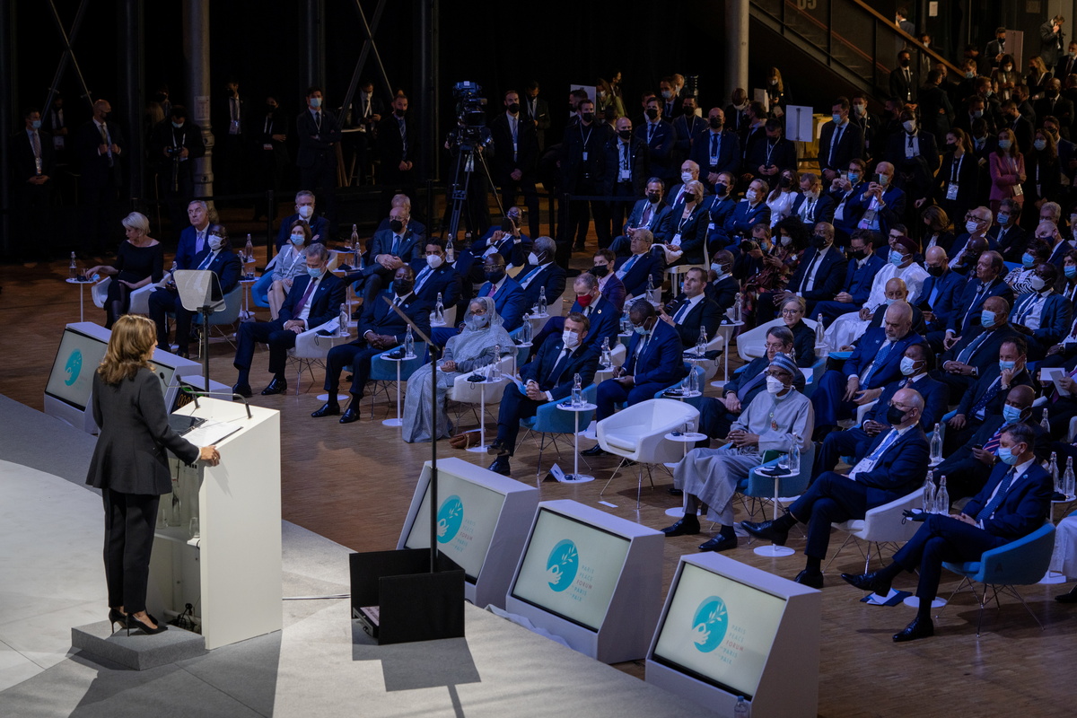 U.S. Vice President Kamala Harris delivers opening remarks at the Paris Peace Forum in Paris, France, November 11, 2021. Sarahbeth Maney/Pool via REUTERSFrench President Emmanuel Macron and U.S. Vice President Kamala Harris watch a welcome video at the beginning of the Paris Peace Forum Paris, France, November 11, 2021. Sarahbeth Maney/Pool via REUTERSBangladeshi Prime Minister Sheikh Hasina, Former European Trade Commissioner Pascal Lamy and U.S. Vice President Kamala Harris speak during a Paris Peace Forum in Paris, France, November 11, 2021. Sarahbeth Maney/Pool via REUTERS