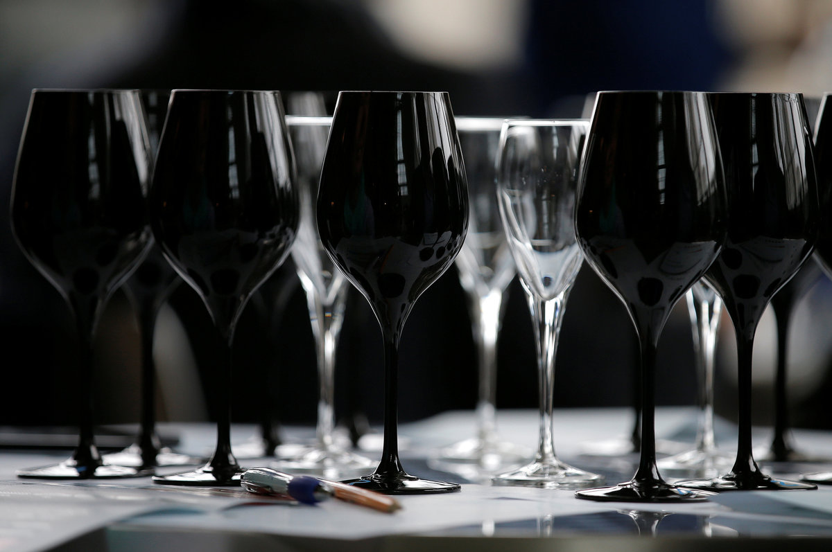 Black glasses specially designed for wine blind testing are seen on a table during the presentation of the new Strasbourg University geo-sensorial wine tasting university degree, in Strasbourg, France, March 28, 2018. REUTERS/Vincent KesslerBlack glasses specially designed for wine blind testing are seen on a table during the presentation of the new Strasbourg University geo-sensorial wine tasting university degree, in Strasbourg, France, March 28, 2018. REUTERS/Vincent KesslerBlack glasses specially designed for wine blind testing are seen on a table during the presentation of the new Strasbourg University geo-sensorial wine tasting university degree, in Strasbourg, France, March 28, 2018. REUTERS/Vincent KesslerBlack glasses specially designed for wine blind testing are seen on a table during the presentation of the new Strasbourg University geo-sensorial wine tasting university degree, in Strasbourg, France, March 28, 2018. REUTERS/Vincent Kessler