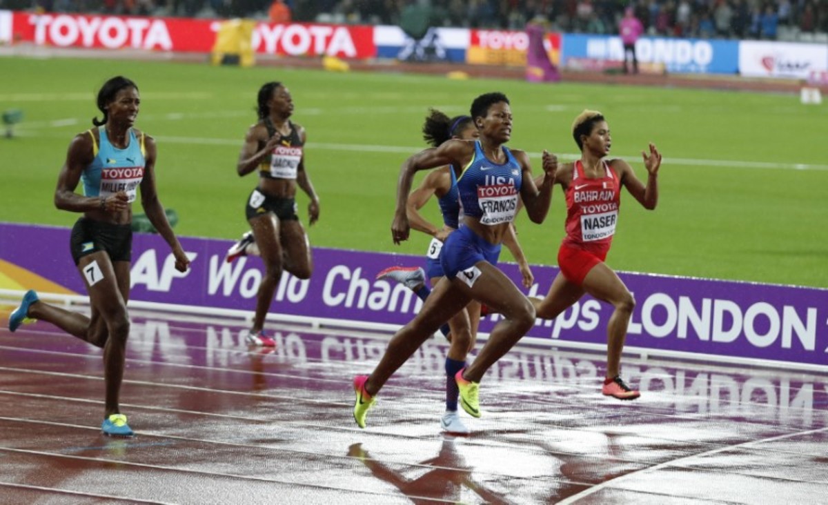 LONDON (Reuters) - American Phyllis Francis won a surprise World Championships 400 metres gold on Wednesday as Olympic champion Shaunae Miller-Uibo inexplicably stumbled when seemingly certain of victory in an extraordinary finale.