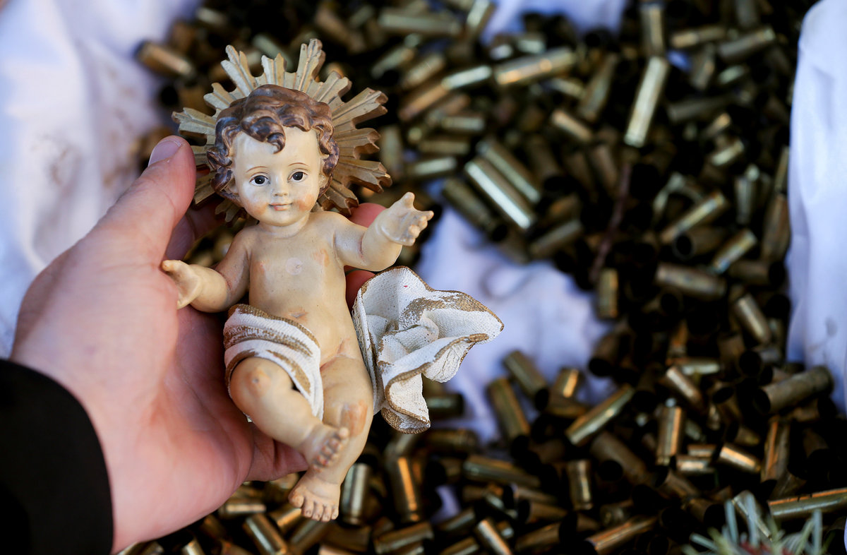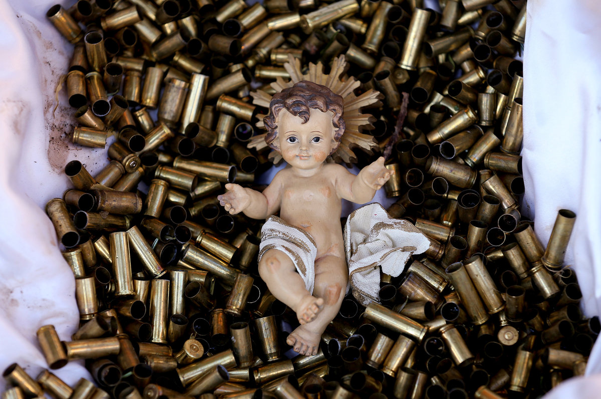 ASSISI, Italy (Reuters) - Franciscan monks have put the baby Jesus in a crib made of bullet shells in a yearly "provocation" nativity scene designed to draw attention to those suffering in the world.