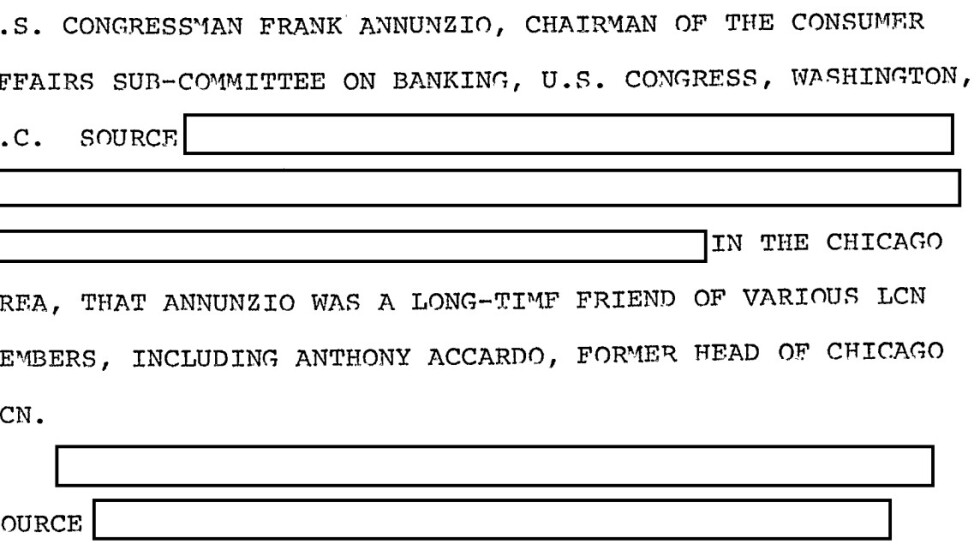But one of the FBI documents quotes someone identified only as a “source” saying Annunzio “was a long-time friend of various LCN members, including Anthony Accardo.”