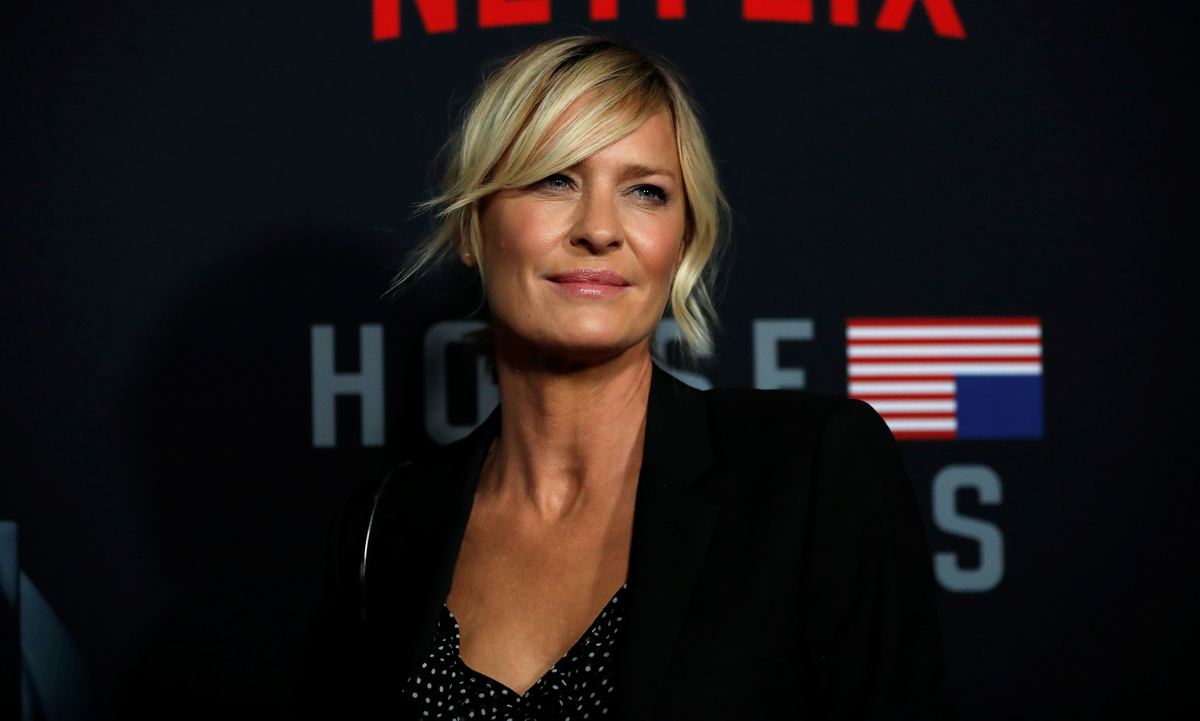At last season's conclusion, Frank's statuesque wife Claire, played by Robin Wright, looked into the camera and declared "my turn" as the power shifted and she became the first female U.S. president.