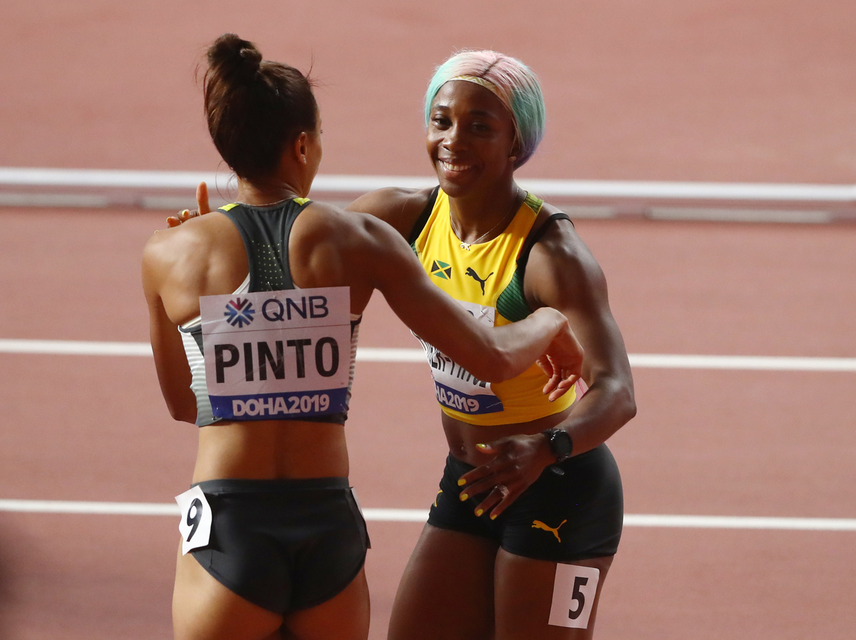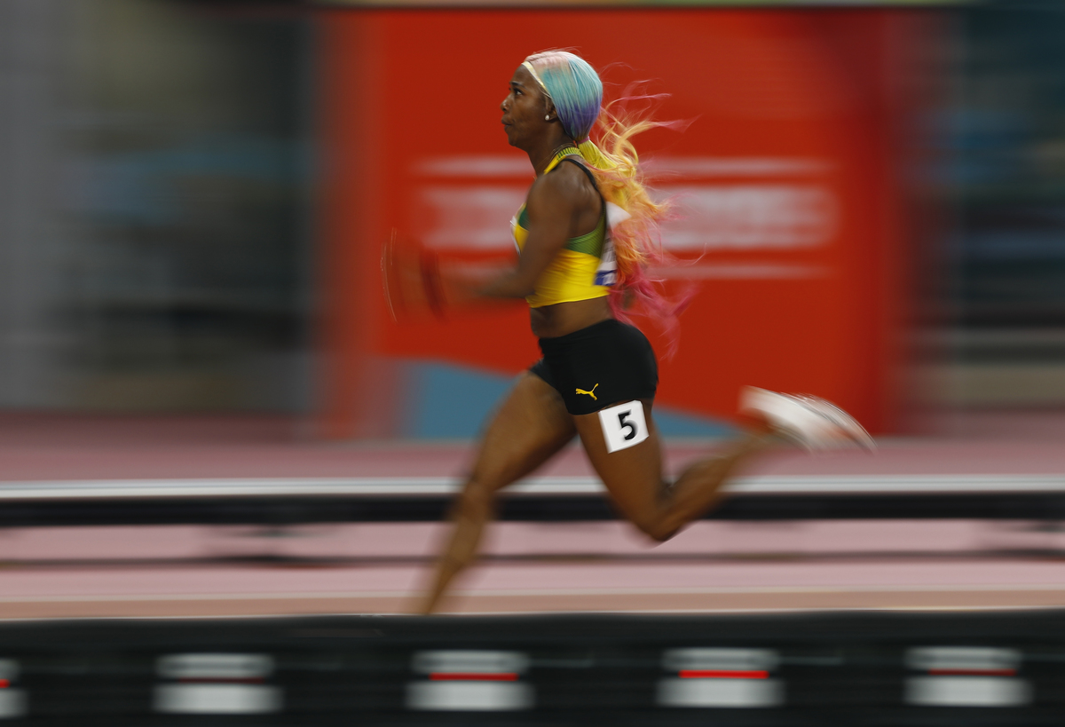 Thompson, taking a cue from Fraser-Pryce went for metallic pink hair for her semi-final, has not looked sharp through the opening rounds coming home second behind Ta Lou in 11 seconds.