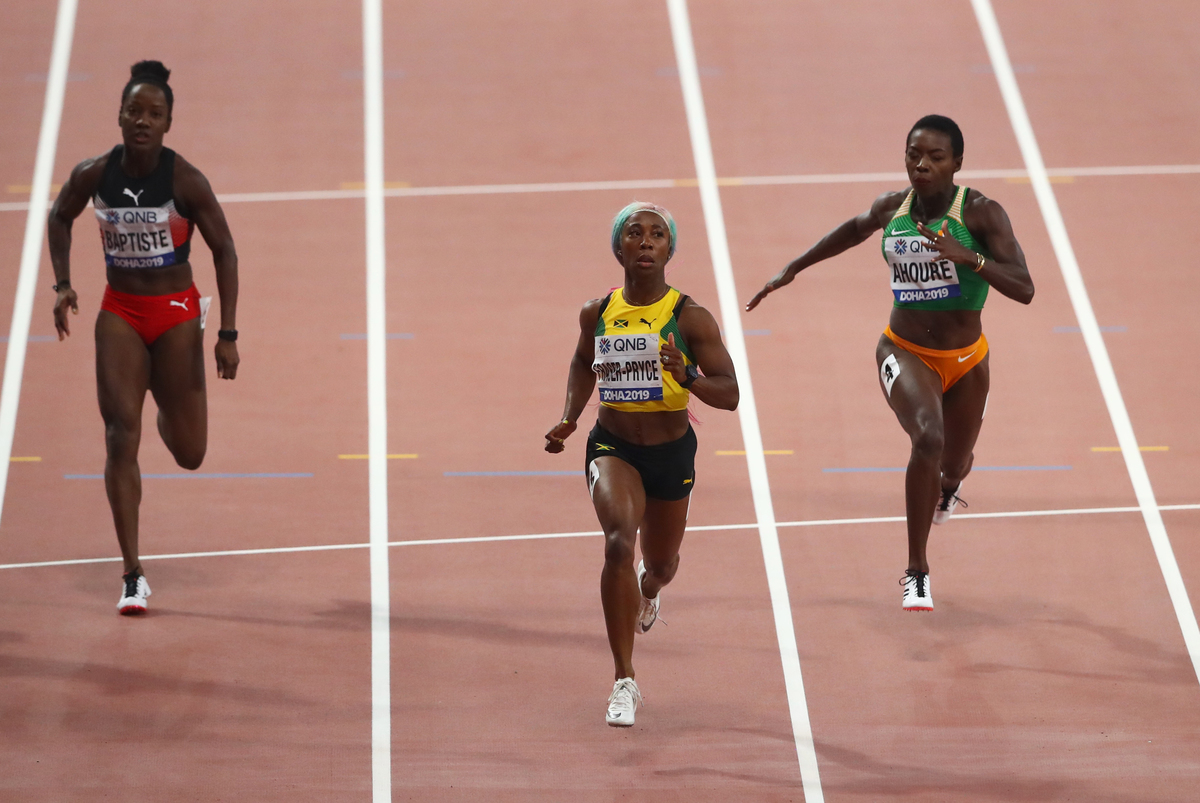 The Ivory Coast's Marie-Josee Ta Lou, world silver medallist at 100m and 200m in London two years ago and Britain's Dina Asher-Smith could throw a wrench into Jamaican party plans both cruising home first in their respective heats in 10.87.