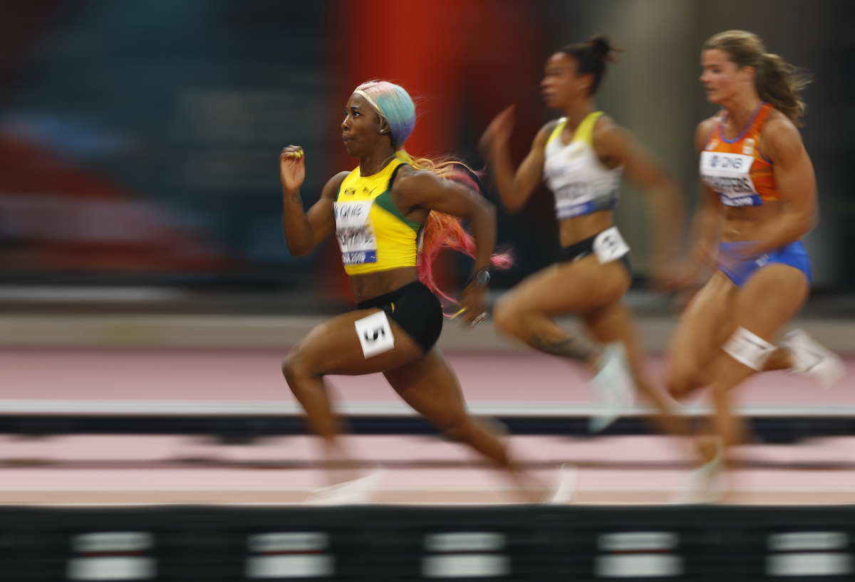 DOHA (Reuters) - Shelly-Ann Fraser-Pryce led a Jamaican charge into the world championship 100 metres final on Sunday, putting the sprinting powerhouse in position for a podium sweep.
