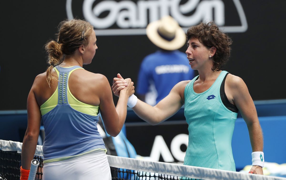 MELBOURNE (Reuters) - Carla Suarez Navarro struck a blow for one of the endangered shots of women's tennis as she used her single-handed backhand to great effect to beat Estonian Anett Kontaveit and reach the Australian Open quarter-finals on Sunday.