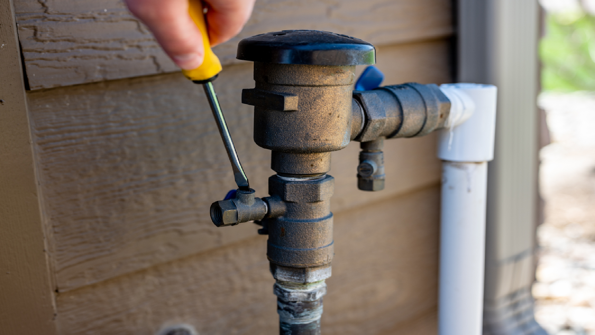 After everything's drained, walk around and make sure you've covered all the bases. Leave all those drain valves open so water can escape if any gets in. Double-check that the backflow preventer is bone dry.