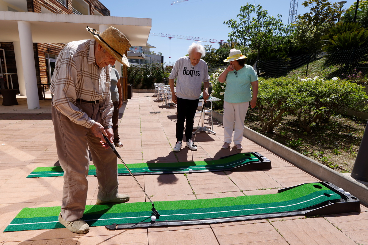 "I'm not sick, I'm doing very well, everything is good," said Sellier as he moved on to the home's chicken roost to collect eggs. On an outdoor patio, residents nudged their balls towards two mini putting holes.