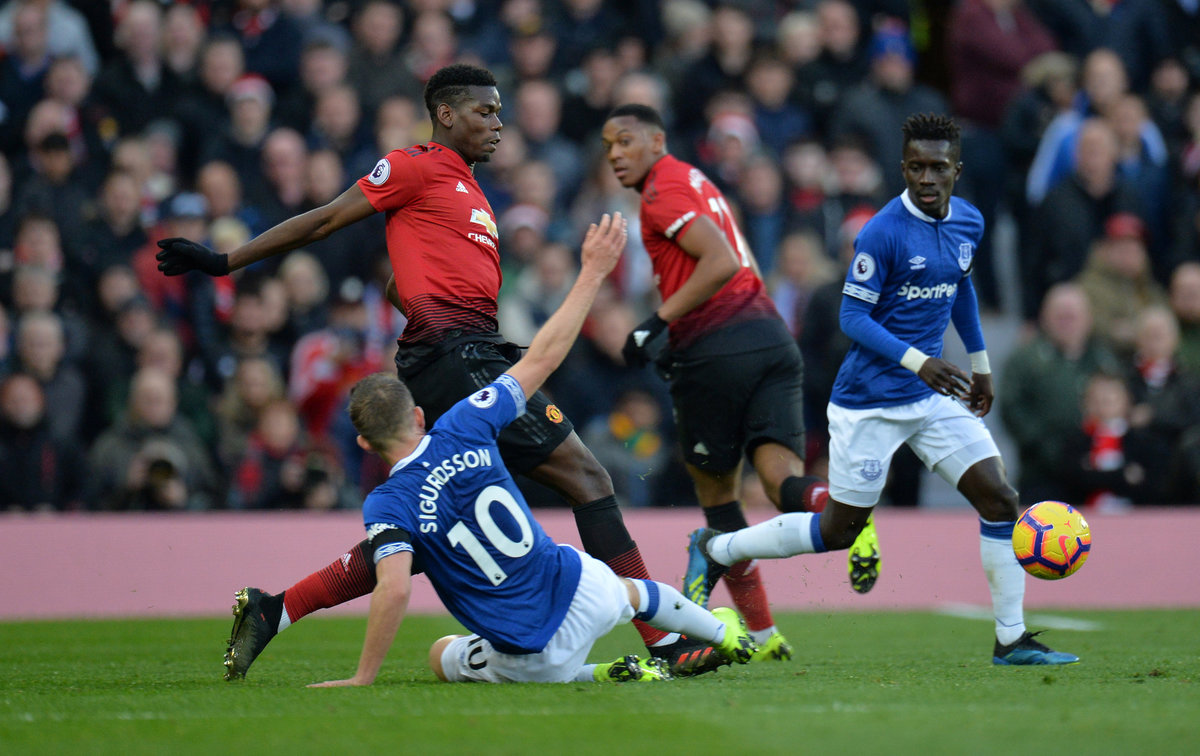 However Pogba was then at fault, giving the ball away in midfield as Everton got back in the game with a Gylfi Sigurdsson penalty in the 77th. Richarlison was brought down in the box by Chris Smalling after Sigurdsson's through ball from Pogba's error.