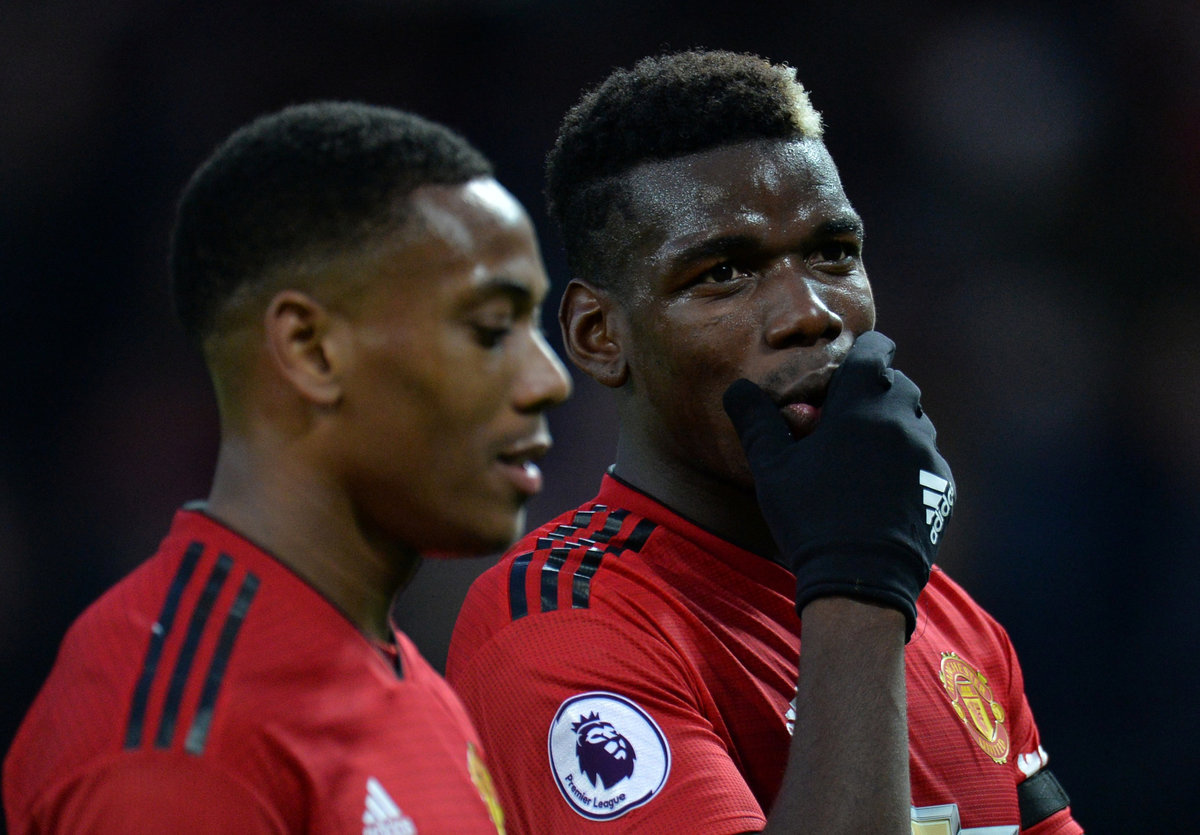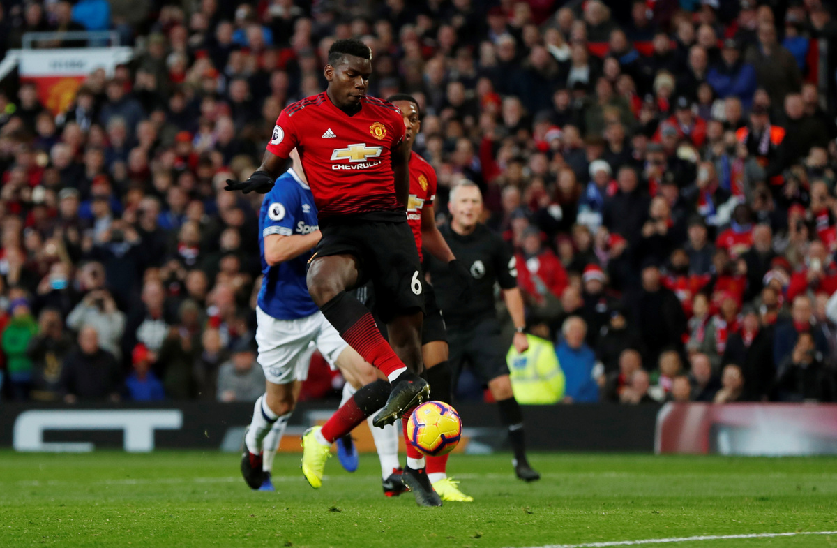 MANCHESTER, England (Reuters) - Goals in each half from Frenchmen Paul Pogba and Anthony Martial gave Manchester United a 2-1 home victory over Everton in the Premier League on Sunday but they had to survive a nervy finale to secure the three points.