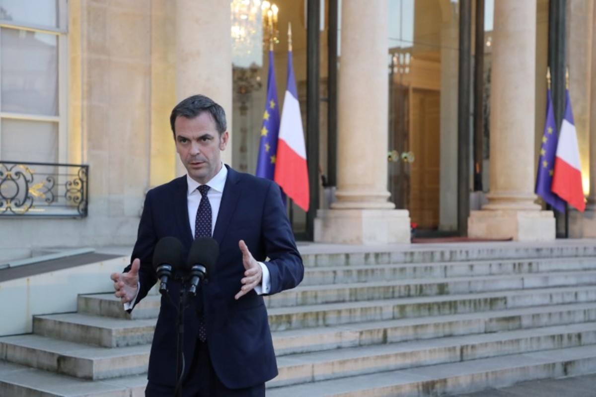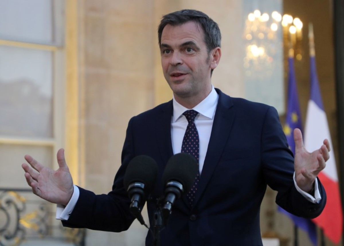 French Health and Solidarity Minister Olivier Veran speaks to the media after the first meeting of French scientists' council Research and Expertise Analysis Committee (CARE), at the Elysee Palace in Paris, France March 24, 2020. Ludovic Marin/Pool via REUTERS
