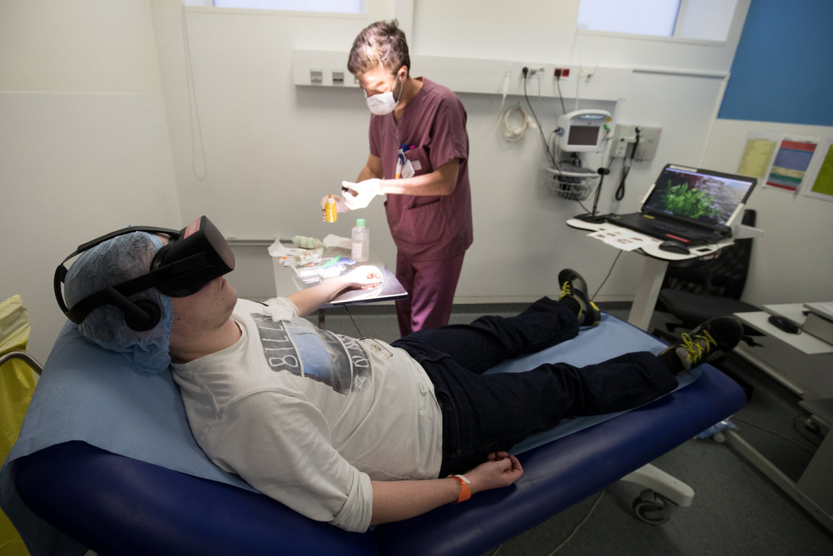 As patients are transported by chunky VR goggles into a three-dimensional world of Japanese zen gardens or snowy hillsides, they become more tolerant of minor but painful procedures such as having a cut stitched, a burn treated, a urinary catheter inserted or a dislocated shoulder pushed back into place.