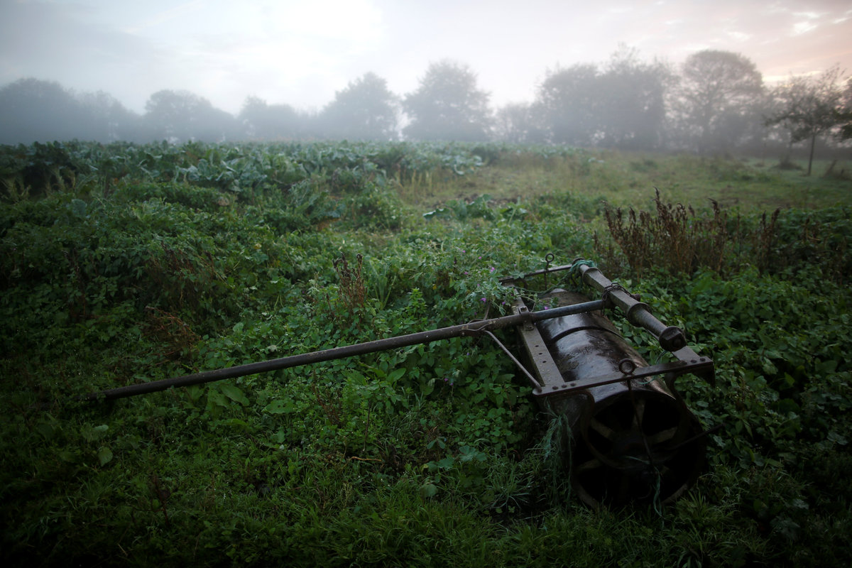 Farming equipment lies on the ground near the farm of French farmer Jean-Bernard Huon in Riec-sur-Belon, France, October 25, 2017. REUTERS/Stephane Mahe