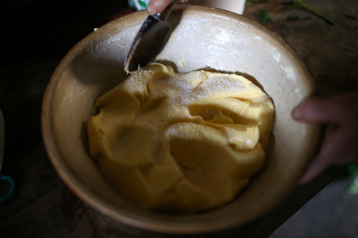 Laurence, companion of French farmer Jean-Bernard Huon, prepares butter at their farm in Riec-sur-Belon, France, October 25, 2017. REUTERS/Stephane Mahe