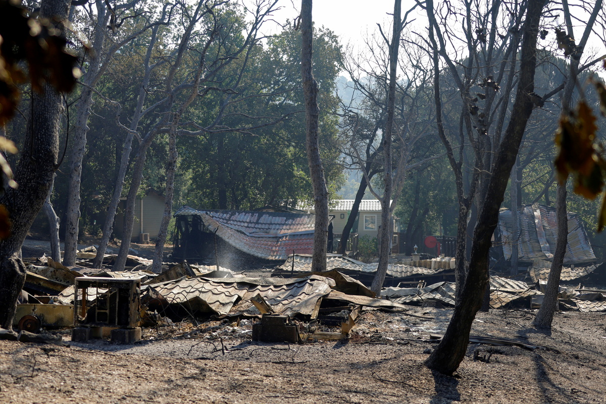 No lives were lost in the area, Gady and local authorities in the Var said, but around 100 homes were destroyed. A campsite in Grimaud was razed to the ground. Charred mobile homes were scattered across the site.