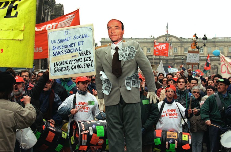 This changed in November-December 1995 with opposition to an austerity package known by the name of the then prime minister, Alain Juppé. Intended to tighten to public finances ahead of France’s adoption of the euro currency, the reforms would have – among others – raised employees’ contribution to retirement funds and aligned specialised retirement regimes with that of the general public.