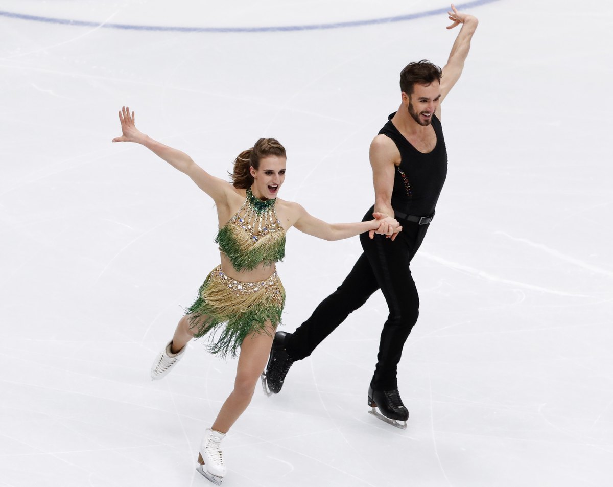 Russians Alexandra Stepanova and Ivan Bukin finished nearly six points behind their French rivals after an energetic performance on home ice.