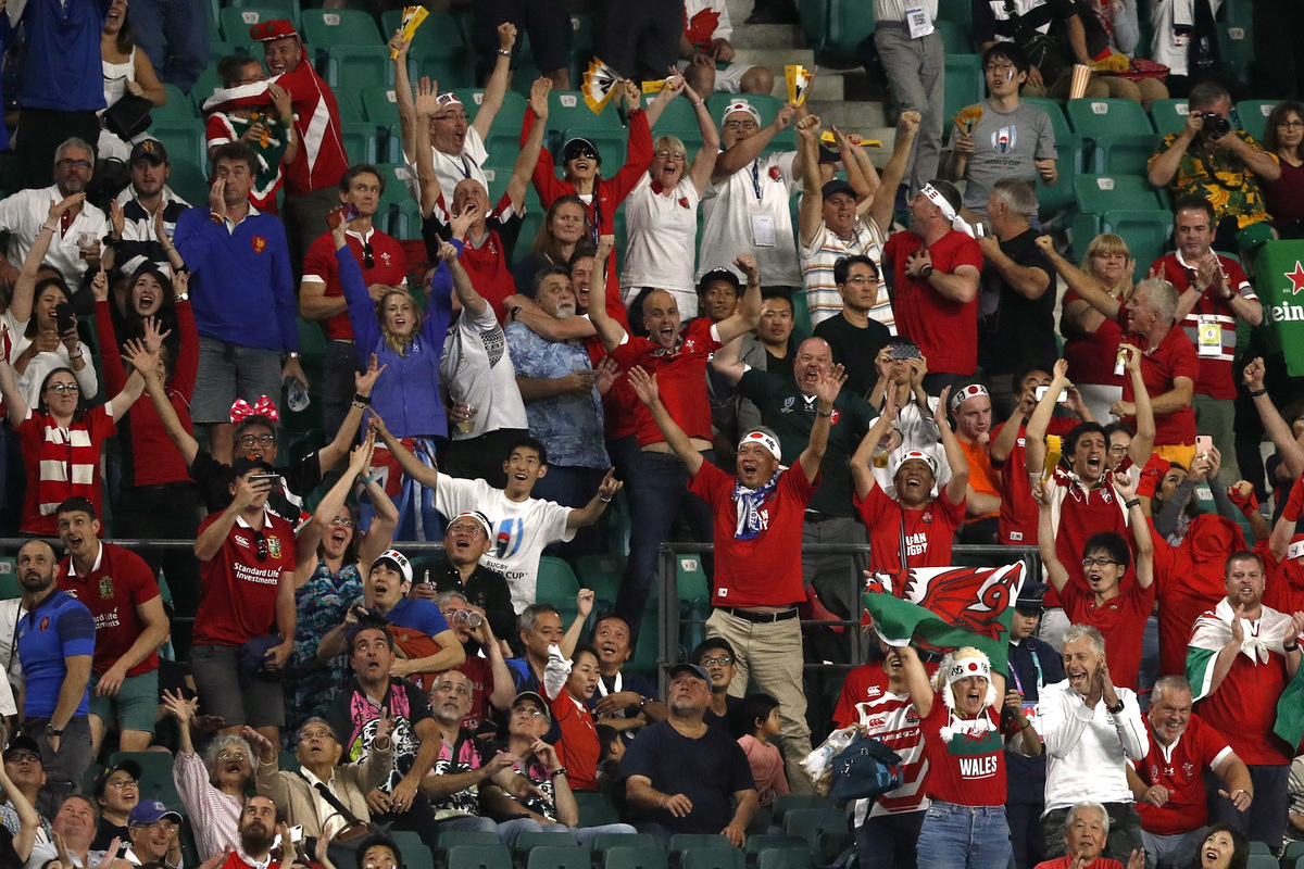 Rugby Union - Rugby World Cup 2019 - Quarter Final - Wales v France - Oita Stadium, Oita, Japan - October 20, 2019 Wales fans celebrate after the match REUTERS/Edgar Su