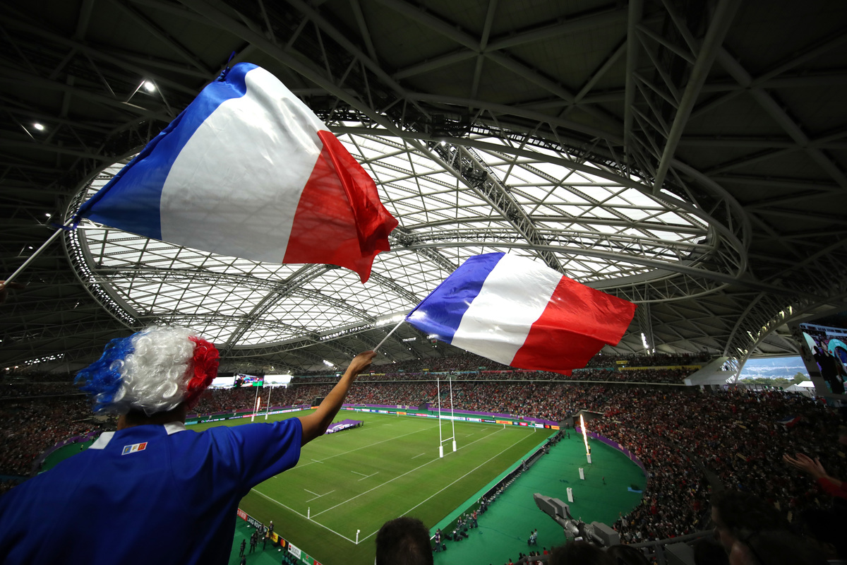 Rugby Union - Rugby World Cup 2019 - Quarter Final - Wales v France - Oita Stadium, Oita, Japan - October 20, 2019 France fans cheer during the match REUTERS/Peter Cziborra