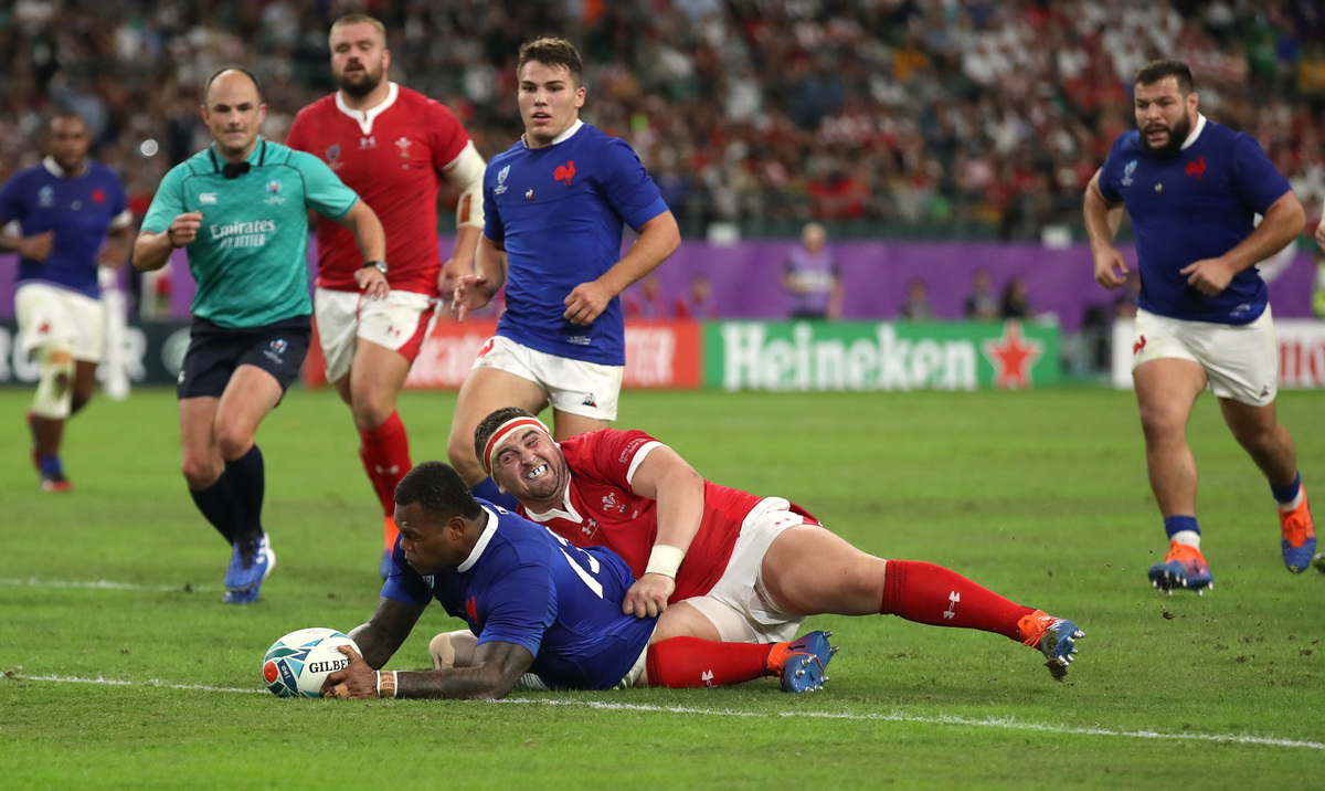 Rugby Union - Rugby World Cup 2019 - Quarter Final - Wales v France - Oita Stadium, Oita, Japan - October 20, 2019 France's Virimi Vakatawa scores their third try REUTERS/Peter Cziborra