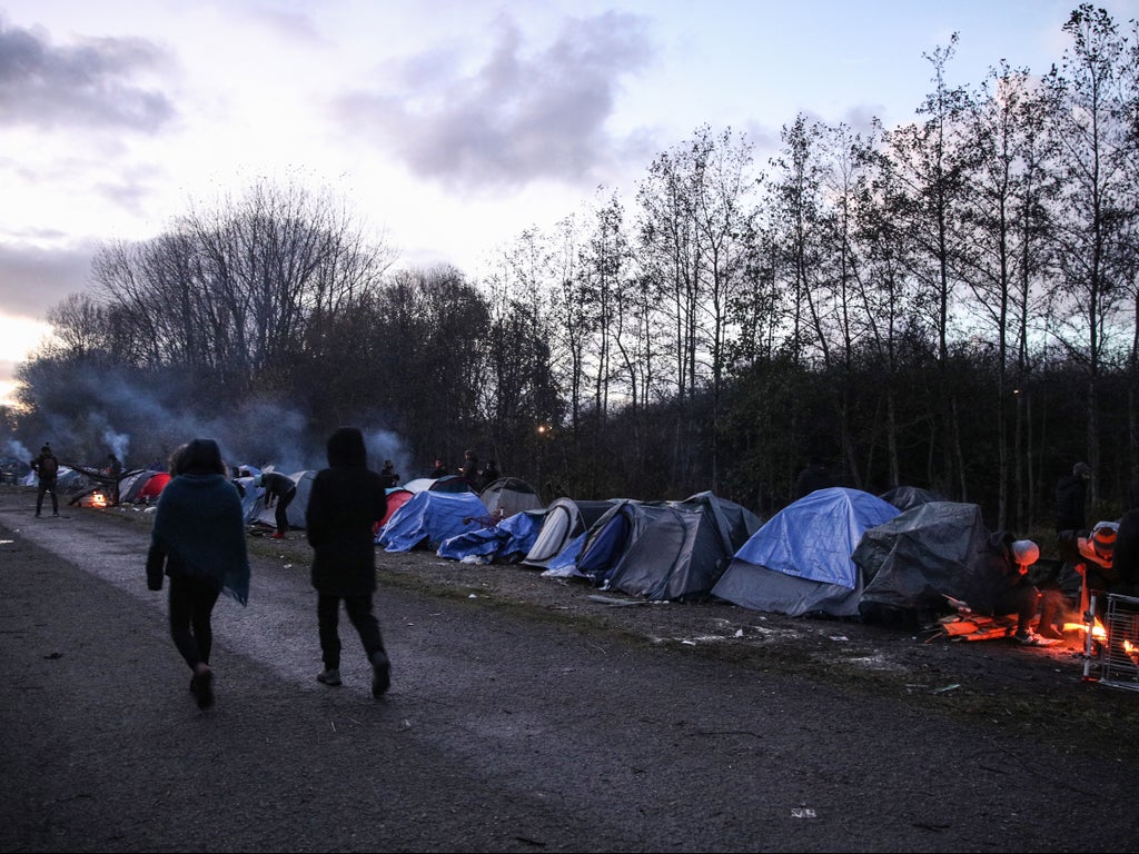 Scores of people had moved to the site near a disused railway in Grande-Synthe after police dismantled a large campsite that was nearby - where more than 1,000 lived - around two weeks ago.