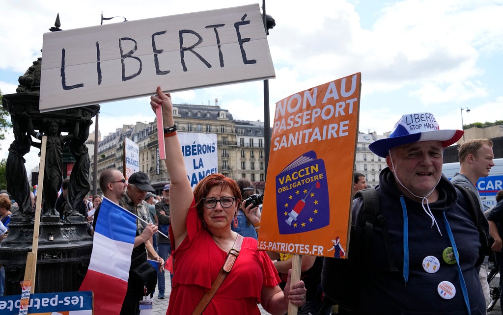 French authorities are implementing the health pass because the highly contagious delta variant is making strong inroads. More than 24,000 new daily cases were confirmed Friday night — compared to just a few thousand cases a day at the start of the month.