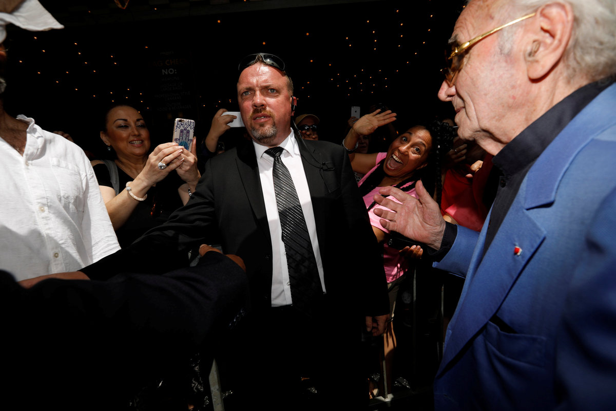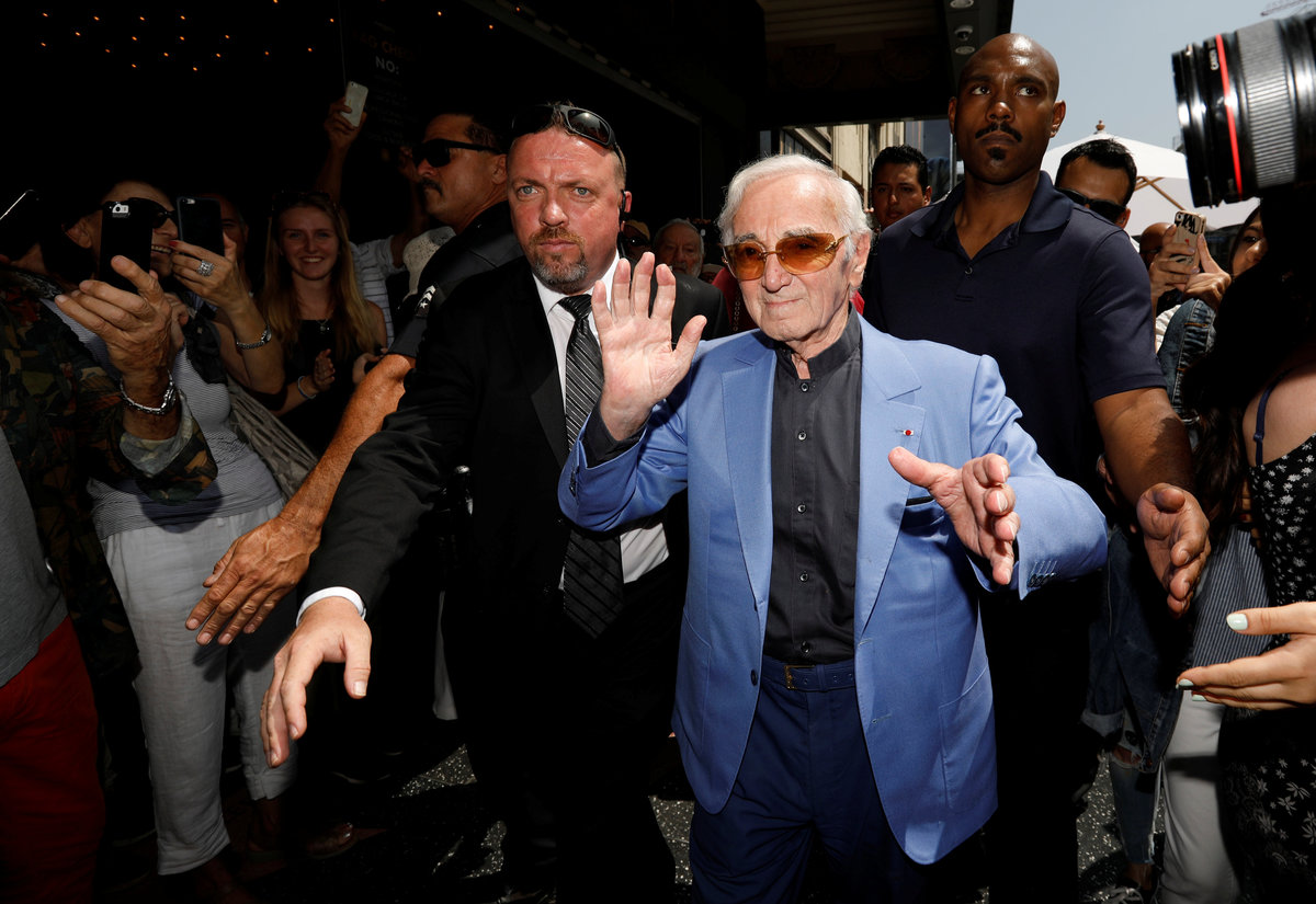 Armenian-French singer Charles Aznavour walks by fans after unveiling his star on the Hollywood Walk of Fame in Los Angeles, California, U.S., August 24, 2017. REUTERS/Mario Anzuoni
