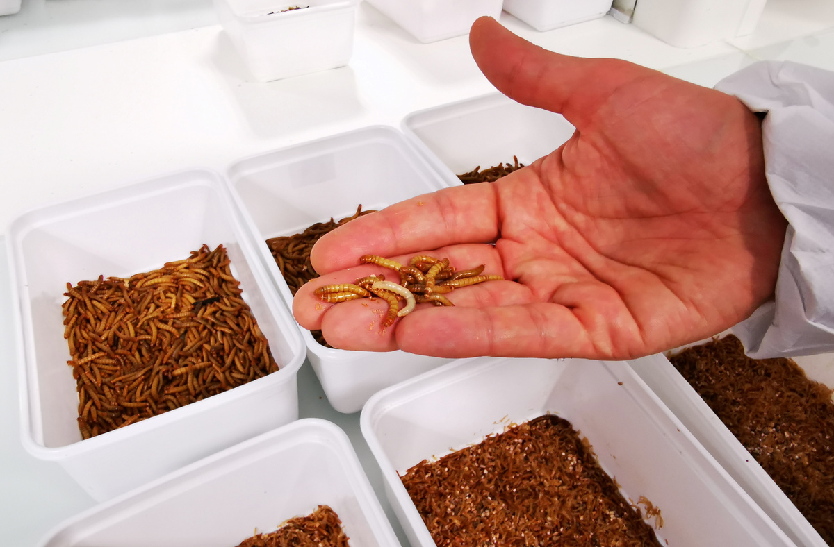 He spoke at the company's first factory, which it opened in Dole, eastern France in 2016, where conveyor belts carried trays with millions of squirming mealworms.