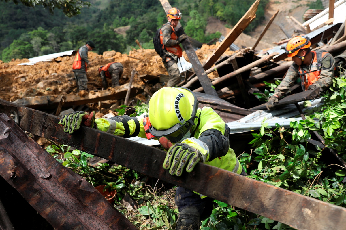 Storm Eta's torrential downpours toppled trees, engorged swift-moving rivers, and ripped down parts of a mountainside above the village of Queja in the central Guatemalan region of Alta Verapaz, burying dozens of people in their homes.