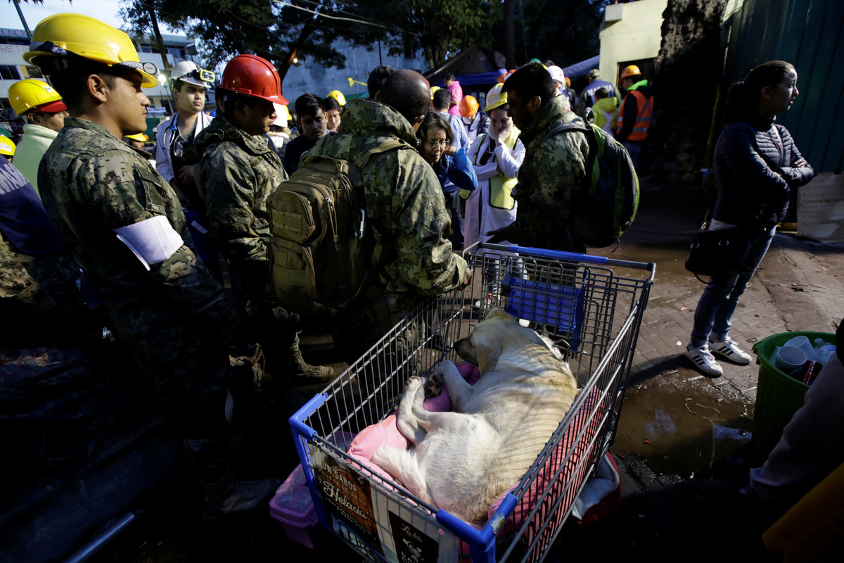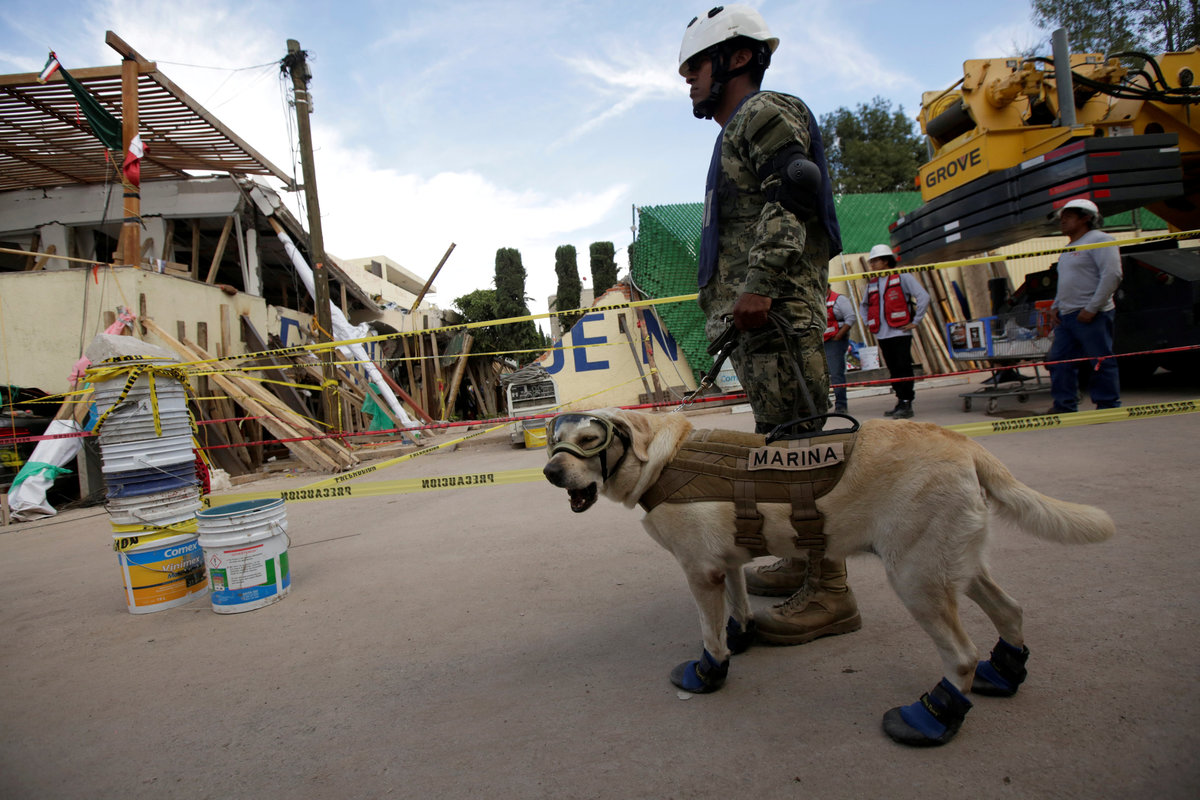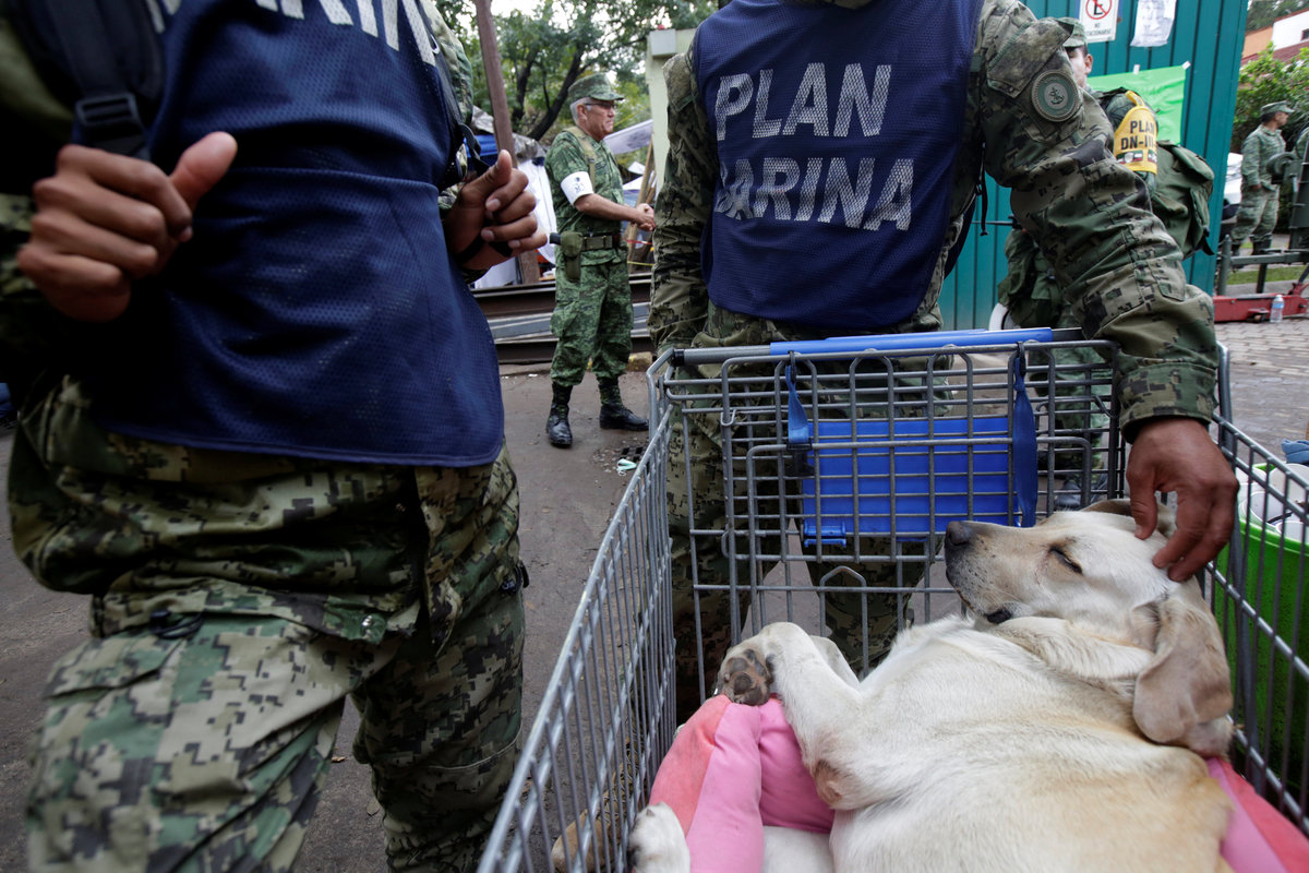Mexico's army also has rescue dogs digging through the debris of damaged buildings, and a dog named Maya from the Jalisco state government was credited with finding two dead bodies on Thursday. The United States and Chile have also brought rescue dogs for the Mexican quake.