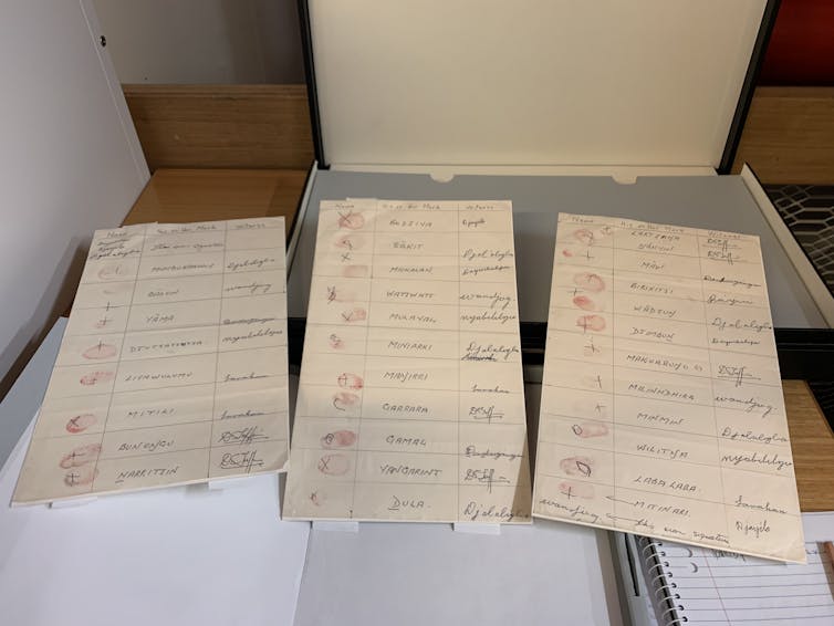 Furious that their views had been dismissed, 33 men and women of just such superior standing duly sent three pieces of paper to Canberra, signed with their inked thumbprints and witnessed by both senior Yolŋu and a missionary Doug Tuffin.