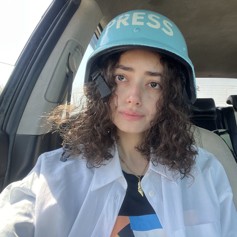 Her last entry before she leaves Gaza for Egypt – and then Australia – is dated Day 45. During those 45 days, she puts on a press helmet and jacket, which both give her protection and weigh her down. And then she speaks: to cameras, to followers, to anyone who will listen. Her social media feeds documenting the war gained worldwide attention, her Instagram following rising from around 3,700 to 4.1 million today.