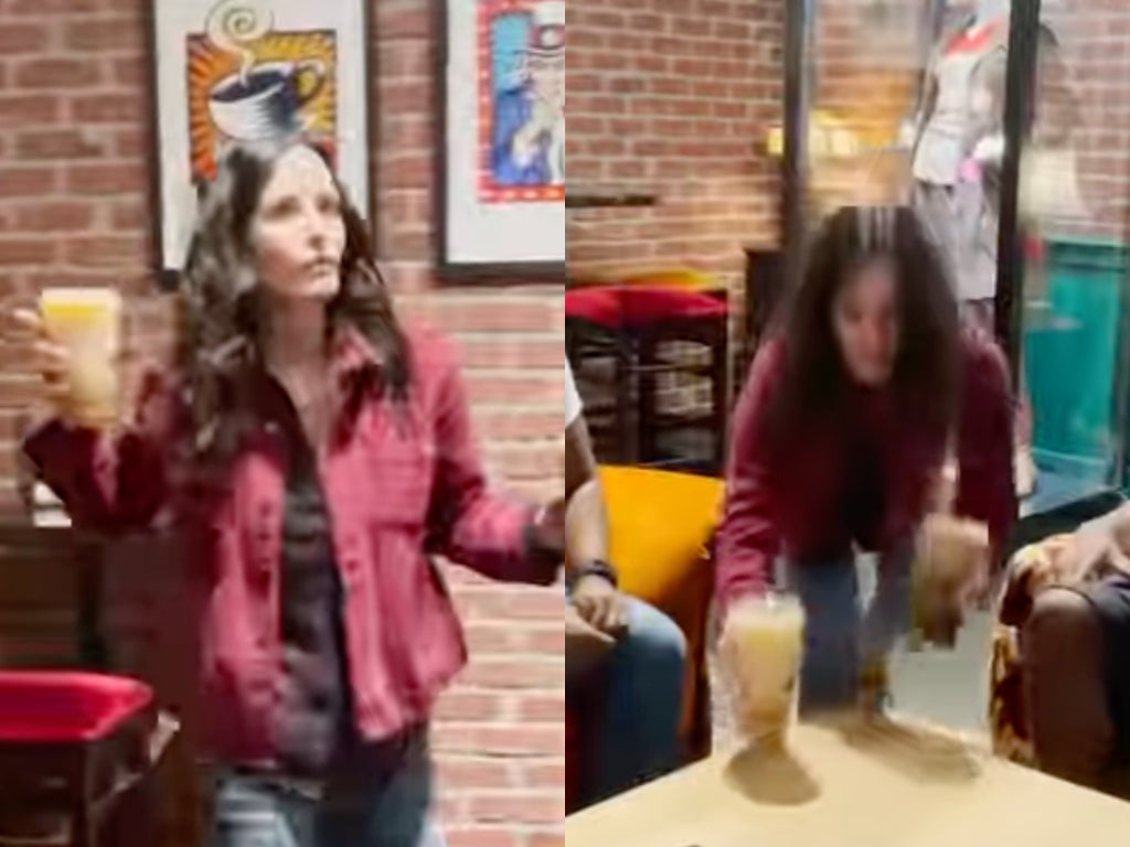 Cox – who starred as Monica Gellar throughout the hit sitcom’s 10 seasons – surprised visitors when she showed up to the coffee house to serve some beverages.