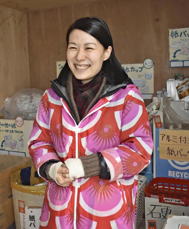 Fascinated by a zero-waste drive implemented by Kamikatsu, Tokushima Prefecture, Sakano moved to the mountain town of 1,500 from Nishinomiya, Hyogo Prefecture, in 2014. Her characteristic positivity has helped her assimilate into the local community, where she now chairs a nonprofit committed to achieving a zero-waste society both at home and abroad.