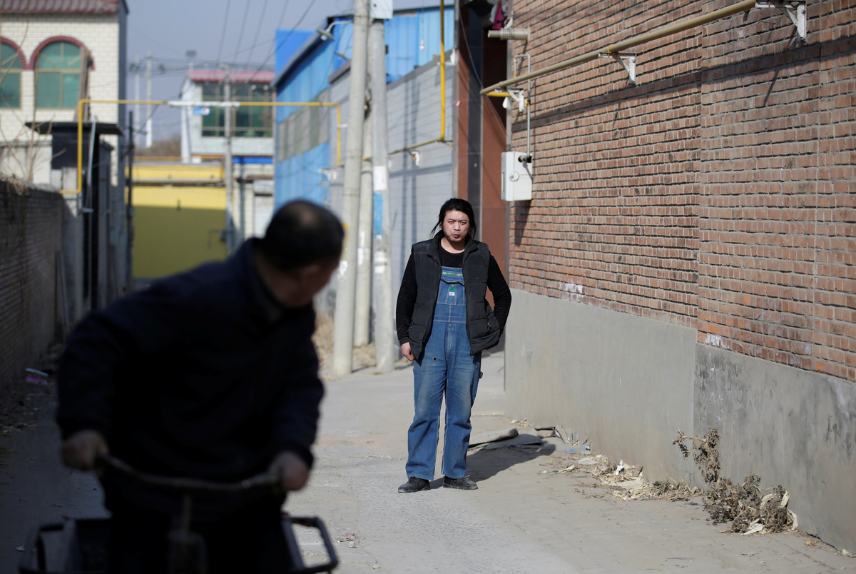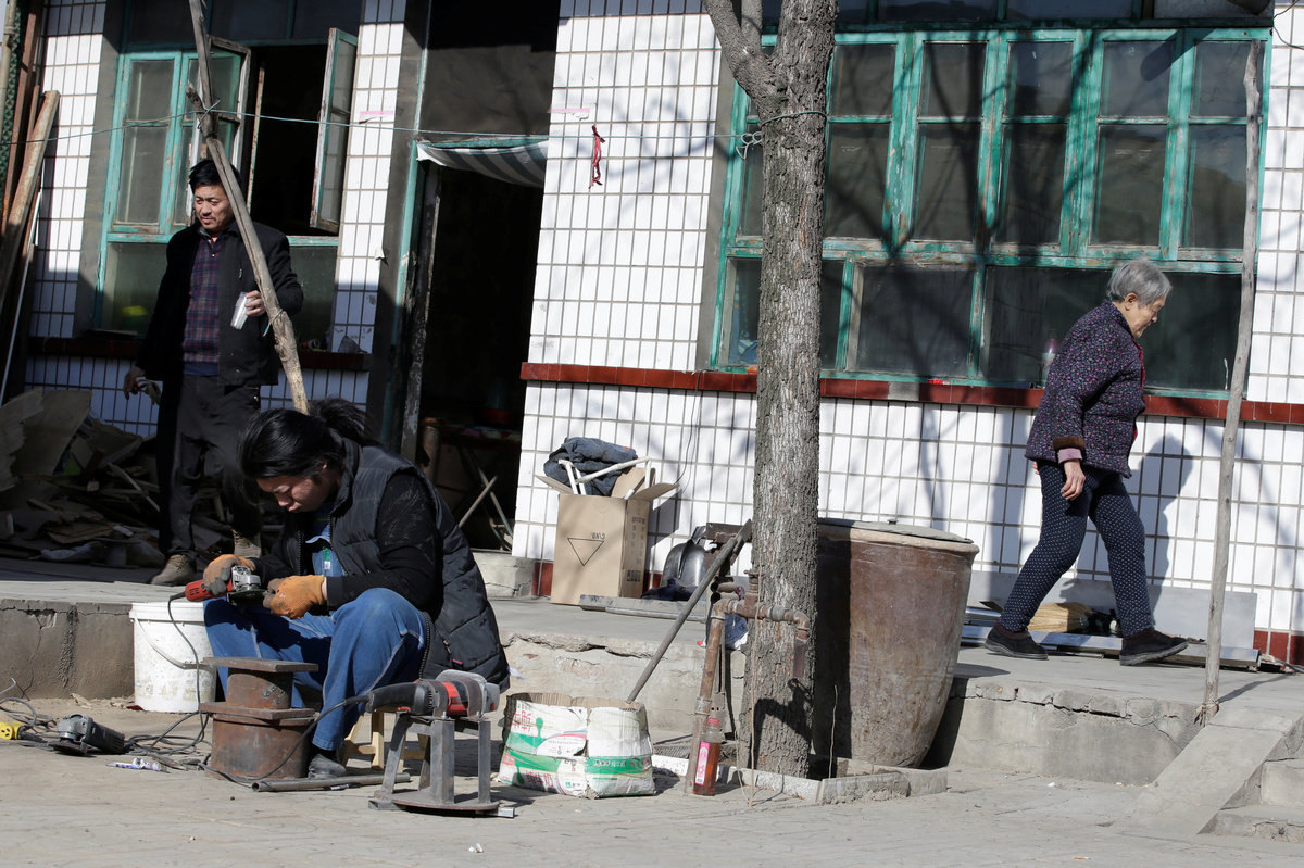 Geng Shuai, dubbed "Useless Edison" by his fans, works next to his father Geng Wenjun (L) and grandmother at a yard of their house in Yangcun village of Baoding, Hebei province, China January 22, 2019. Picture taken January 22, 2019. REUTERS/Jason Lee