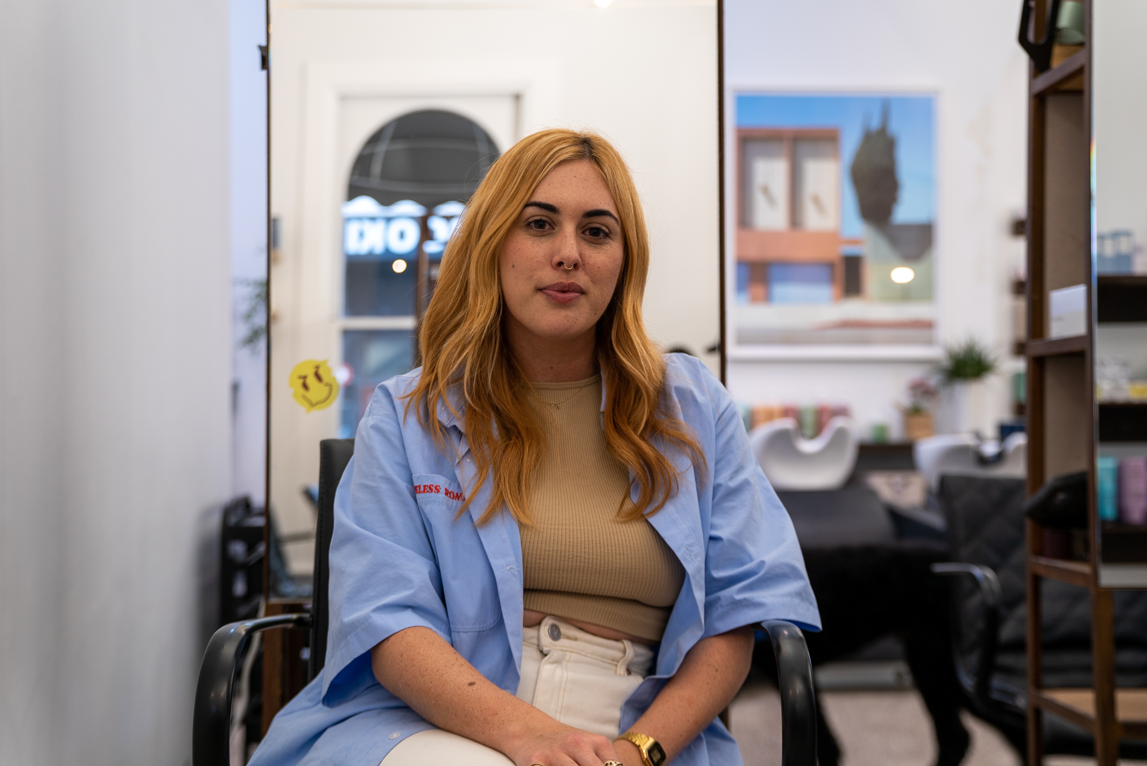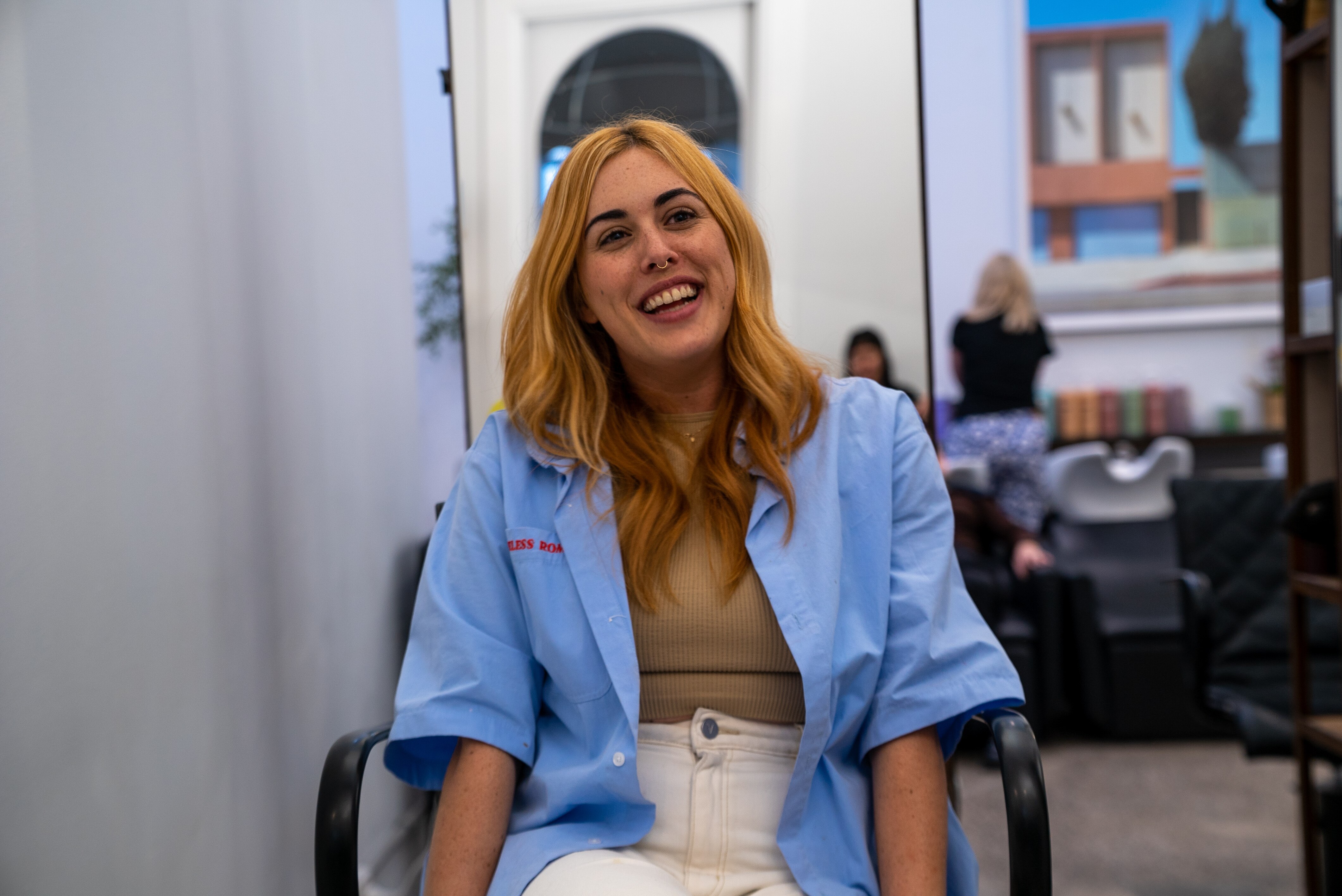 It'll be her first mullet, but she's not nervous. "It's just hair," she laughs while facing herself in the salon's mirror.