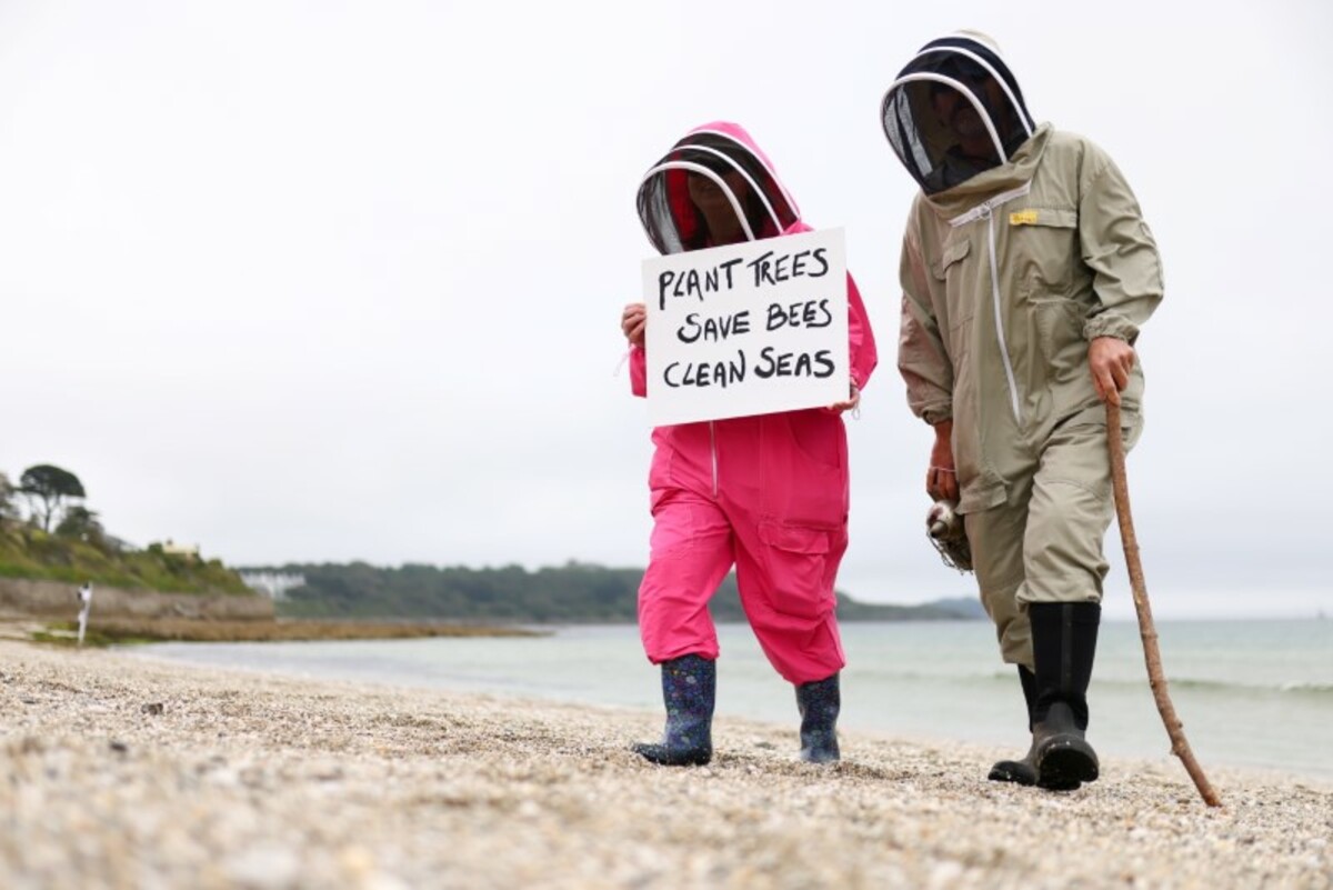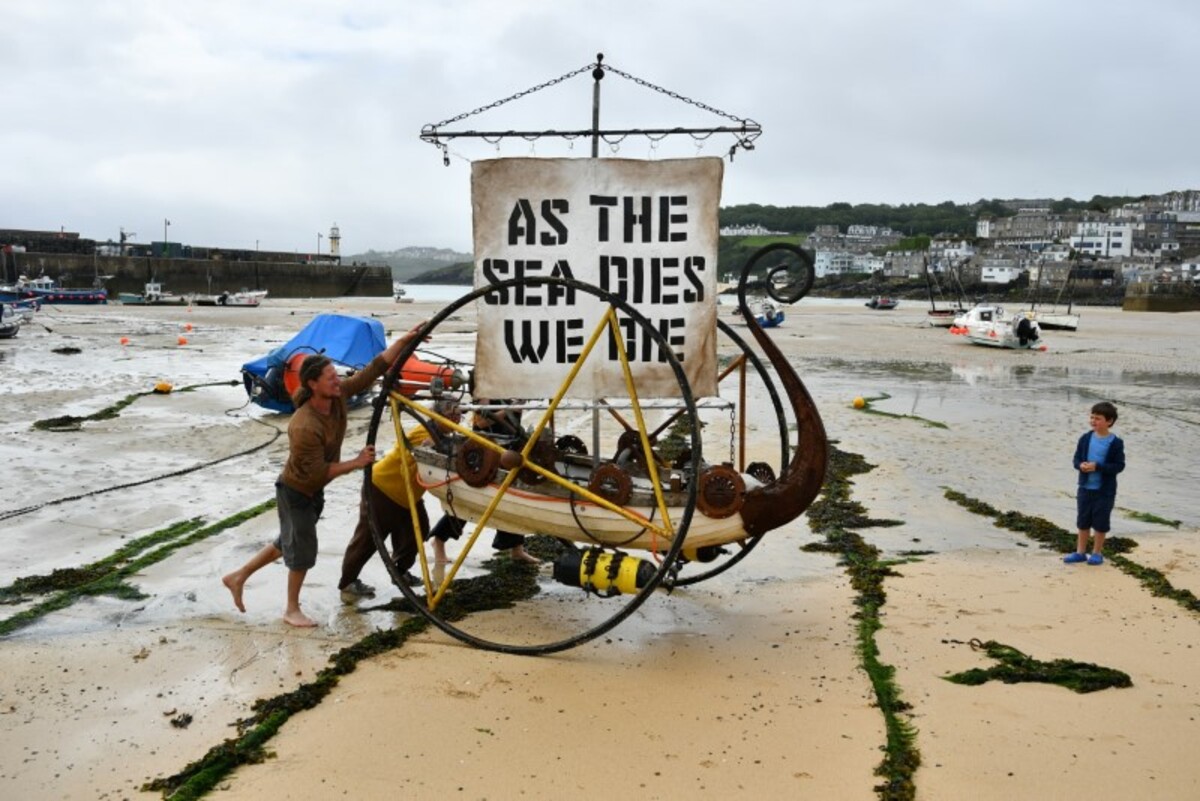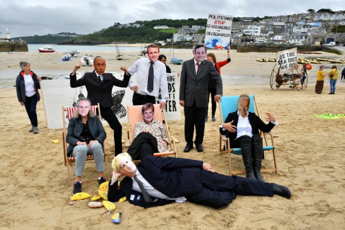 Several hundred climate activists - some dressed as blackbirds as a symbol of warning and others banging drums - gathered in St Ives, just a stone's throw from the heavily guarded G7 summit venue at Carbis Bay, and marched along the beach.