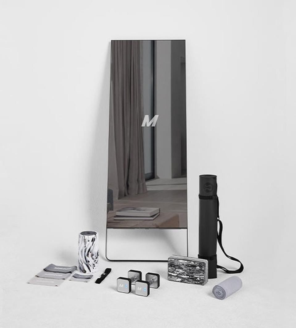 A built-in camera allows you to work out with fellow Mirror-owning friends and get the occasional live feedback and shoutout from trainers while you work out. This particular kit comes with a slew of accessories to help you along the way, including a yoga mat, free weights, resistance bands and stretching strap.