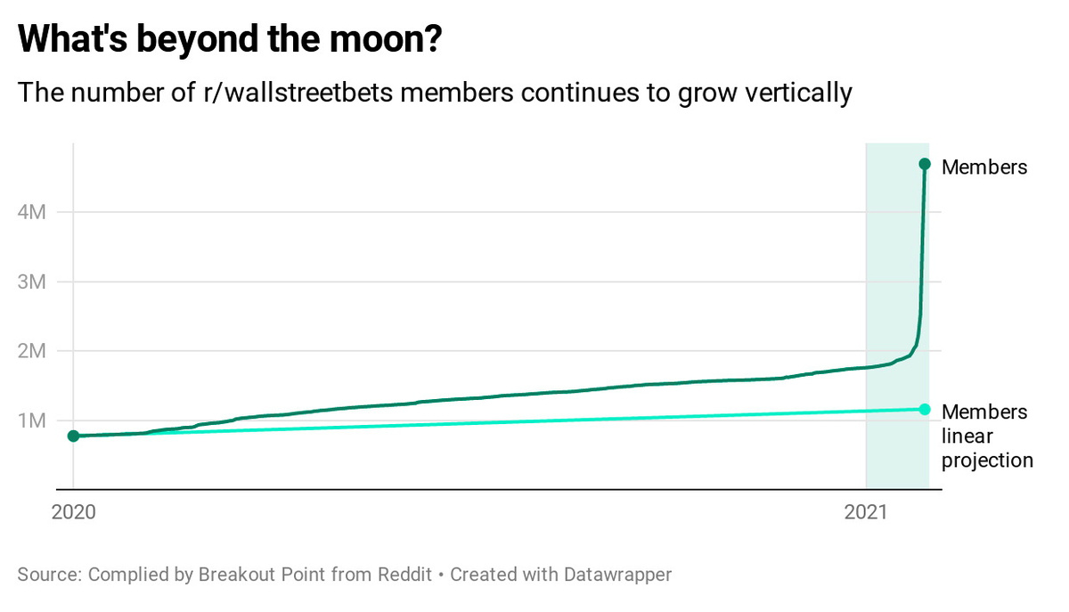 Website Reddit's wallstreetbets page, which this week picked the pockets of seasoned short sellers by encouraging a buying frenzy on GameStop, added two million followers in the last 48 hours.
