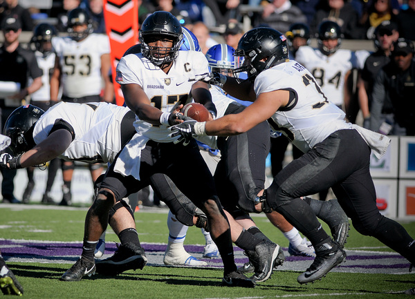 Army runs a triple-option offense. Bradshaw has a split-second to decide whether to hand the ball to his fullback, tuck it and run or pitch to the slotback. Like military training, it demands precision.