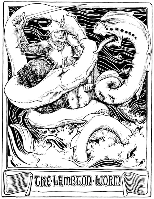 The story details a great slithering beast, a dragon that ate livestock and children along the River Wear in England’s County Durham. It grew from a tiny eel-like creature discarded by a local aristocrat from the Lambton family after a fishing trip on the Sabbath: this latter detail a narrative omen drawing attention to the dangers of profanity, a significant concern in the social history of the story.