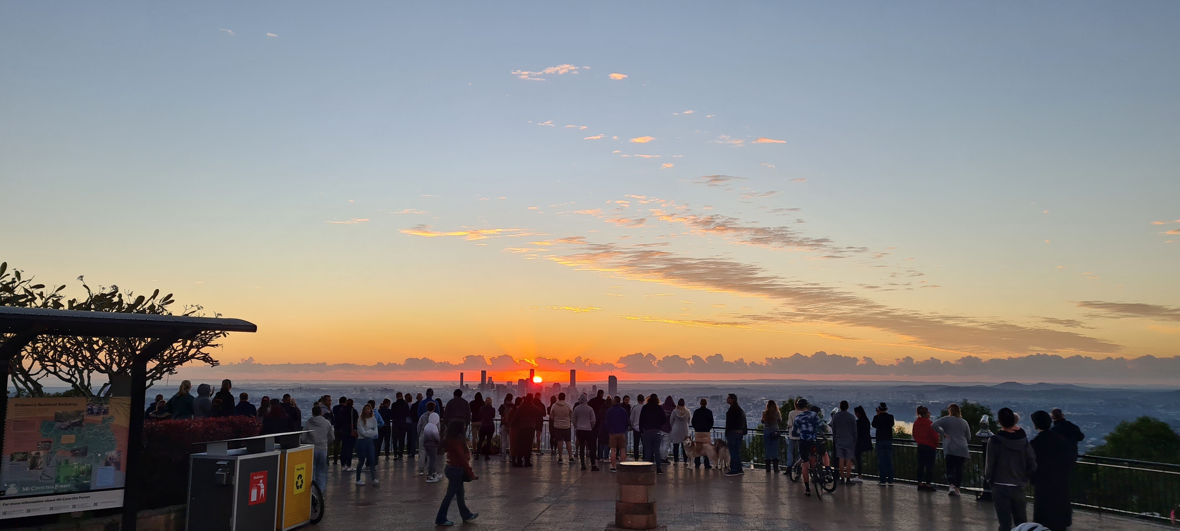 While in Brisbane, crowds gathered at the Mount Coot-tha Summit Lookout at sunrise for a dawn service.