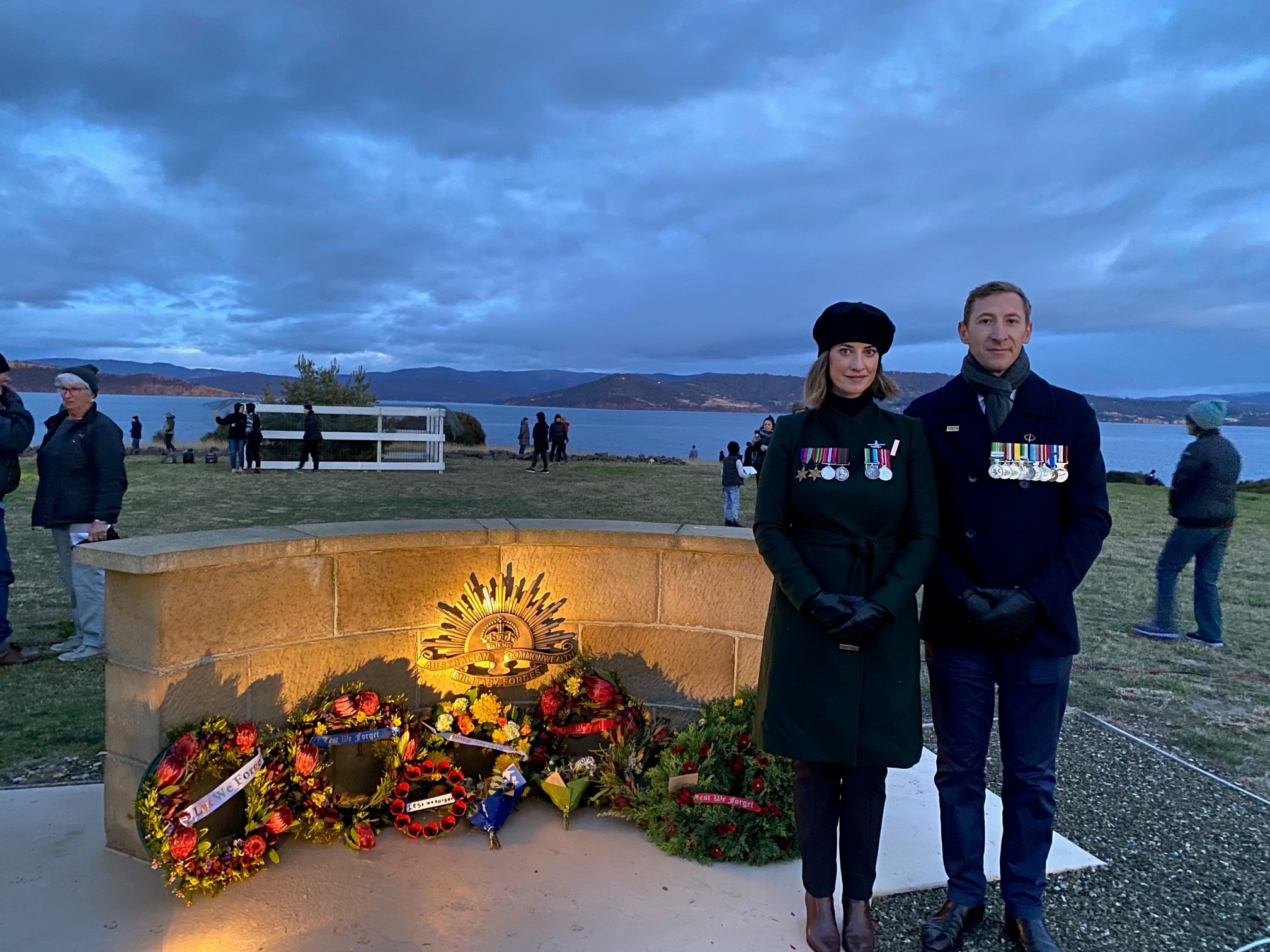 In Tasmania, Rosemary Killalea, her daughter Elanor and their friend Ernie attended a dawn service at South Arm.