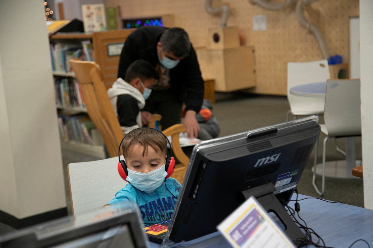 FILE PHOTO: Mirwais Khan Zadran, 2, uses the computer at the library in Bowling Green, Kentucky, U.S., November 27 2021. The Zadran family, Afghan refugees fleeing the Taliban, came to Bowling Green after a spell at a New Mexico military base. They secured a house and the children have been sent to school, with the help of local resettlement agency, the International Center. REUTERS/Amira Karaoud