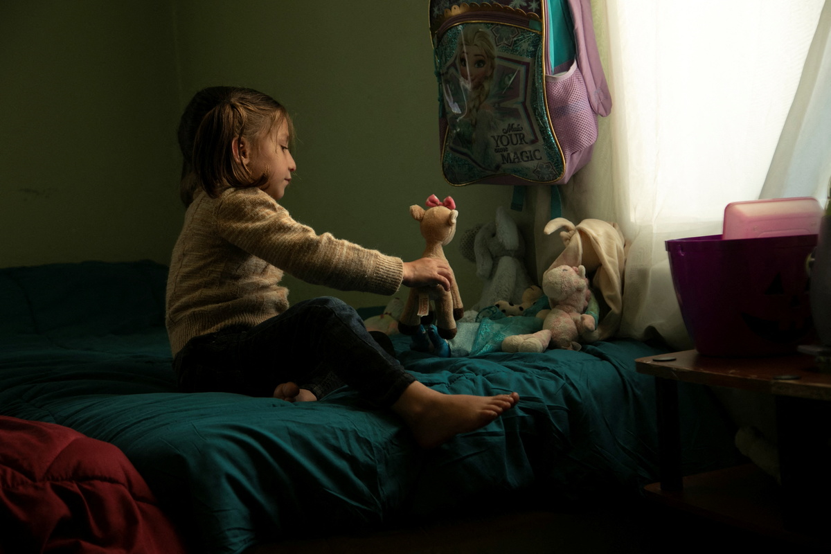 Roya Habibi, 6, plays with donated toys in her room in Bowling Green, Kentucky, U.S., November 5 2021. Bowling Green has welcomed waves of refugees over four decades, beginning with the Cambodians in the 1980s and then Bosnians in the 1990s, plus Iraqis, Burmese, Rwandese and Congolese and others, who have helped make the city of 72,000 a diverse and economically thriving place. REUTERS/Amira Karaoud